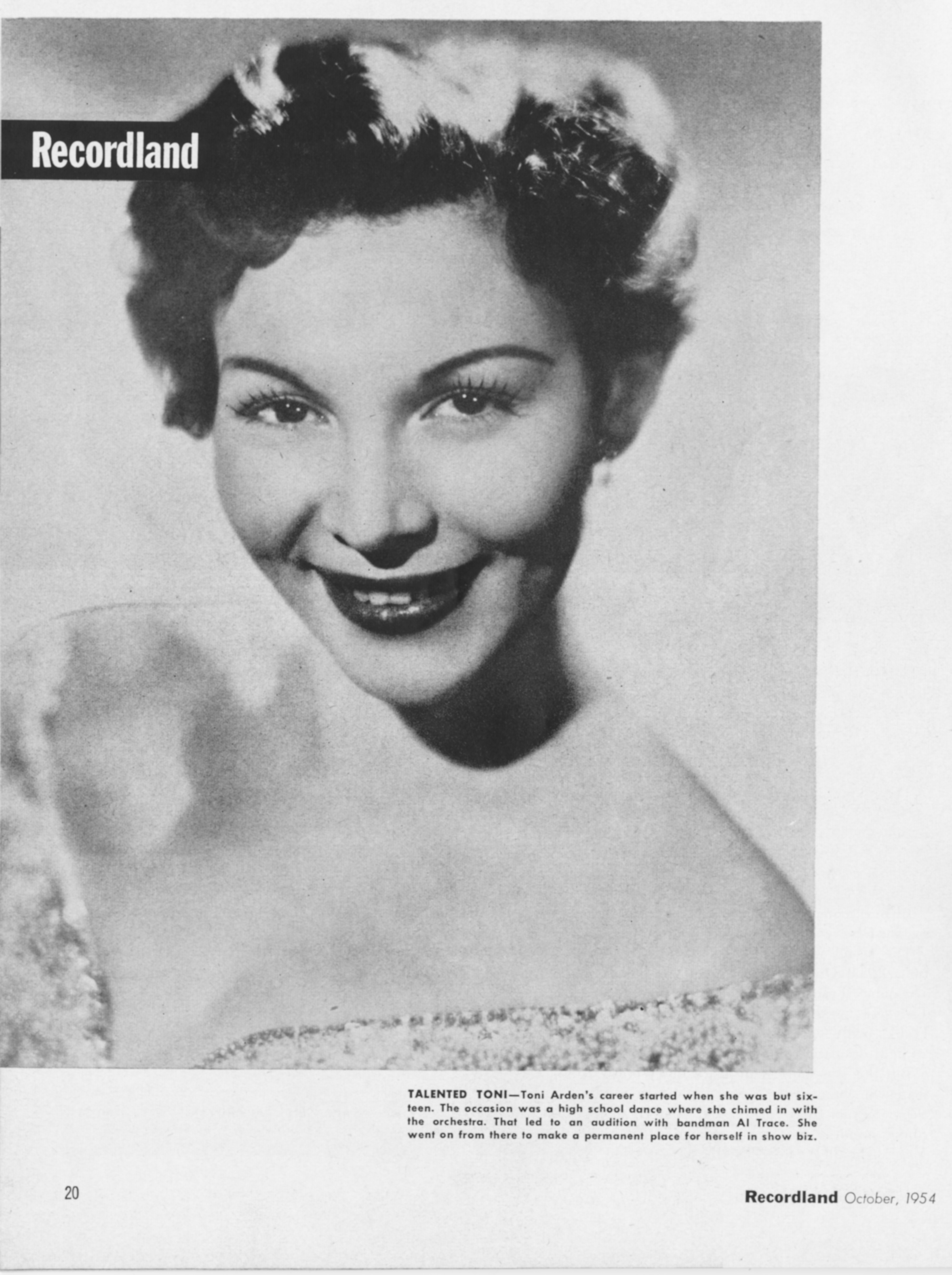 Toni ArdenToni Arden Toni Arden Add article description Antoinette Ardizzone (February 15, 1924 – May 29, 2012), known professionally as Toni Arden, was an American traditional pop singer. Family Arden was born in New York City. Her father, Phillip Ardizzone, was a singer with the Metropolitan Opera and La Scala.[1] Her brother, Jan Arden, was also a singer.[2] The siblings teamed up for night club performances in the late 1950s.[3] Career Early years Arden became a big band singer in the 1940s, singing with Al Trace, Joe Reichman, Ray Bloch and Shep Fields. Recording She started recording as a soloist in 1946 for the minor National Records company. After her appearance on the early television talent series Doorway to Fame, Arden… (Source: Wikipedia)
