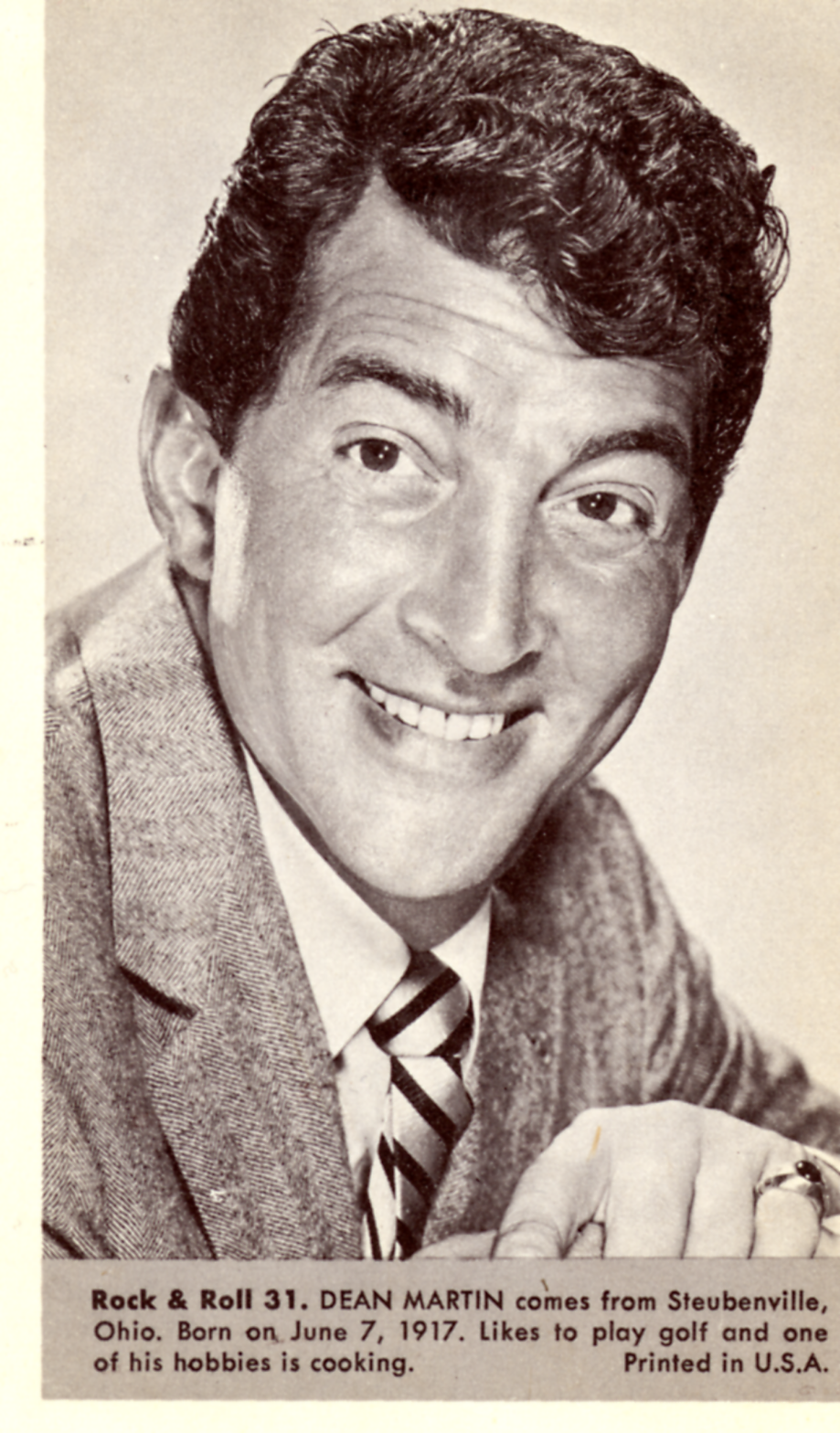 ![]() Photo of Dean Martin in 1958. Image by NBC Photo by Elmer Holloway, via Wikimedia Commons. Licensed Public domain |