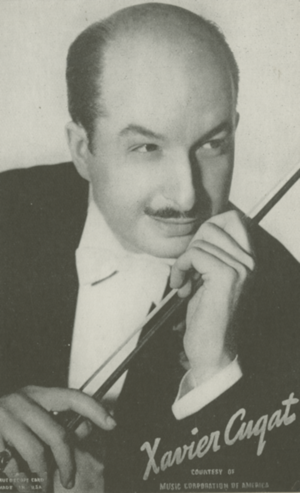 Xavier CugatXavier Cugat Xavier Cugat Catalan-American musician and bandleader (1900–1990) Xavier Cugat (/ˈzeɪviər kuːɡɑːt/; Catalan: [ʃəβiˈe kuˈɣat]; 1 January 1900 – 27 October 1990) was an American musician and bandleader who was a leading figure in the spread of Latin music in the United States. Originally from Girona, Catalonia in Spain, he spent his formative years in Havana, Cuba, before arriving in New York City in 1915. A trained violinist and arranger, he was the leader of the resident orchestra at the Waldorf–Astoria hotel from 1933 to 1949 and a prolific recording artist for 40 years. He became known as the "Rumba King." A restaurateur in West Hollywood and New York, he and his band appeared in numerous motion pictures in… (Source: Wikipedia)