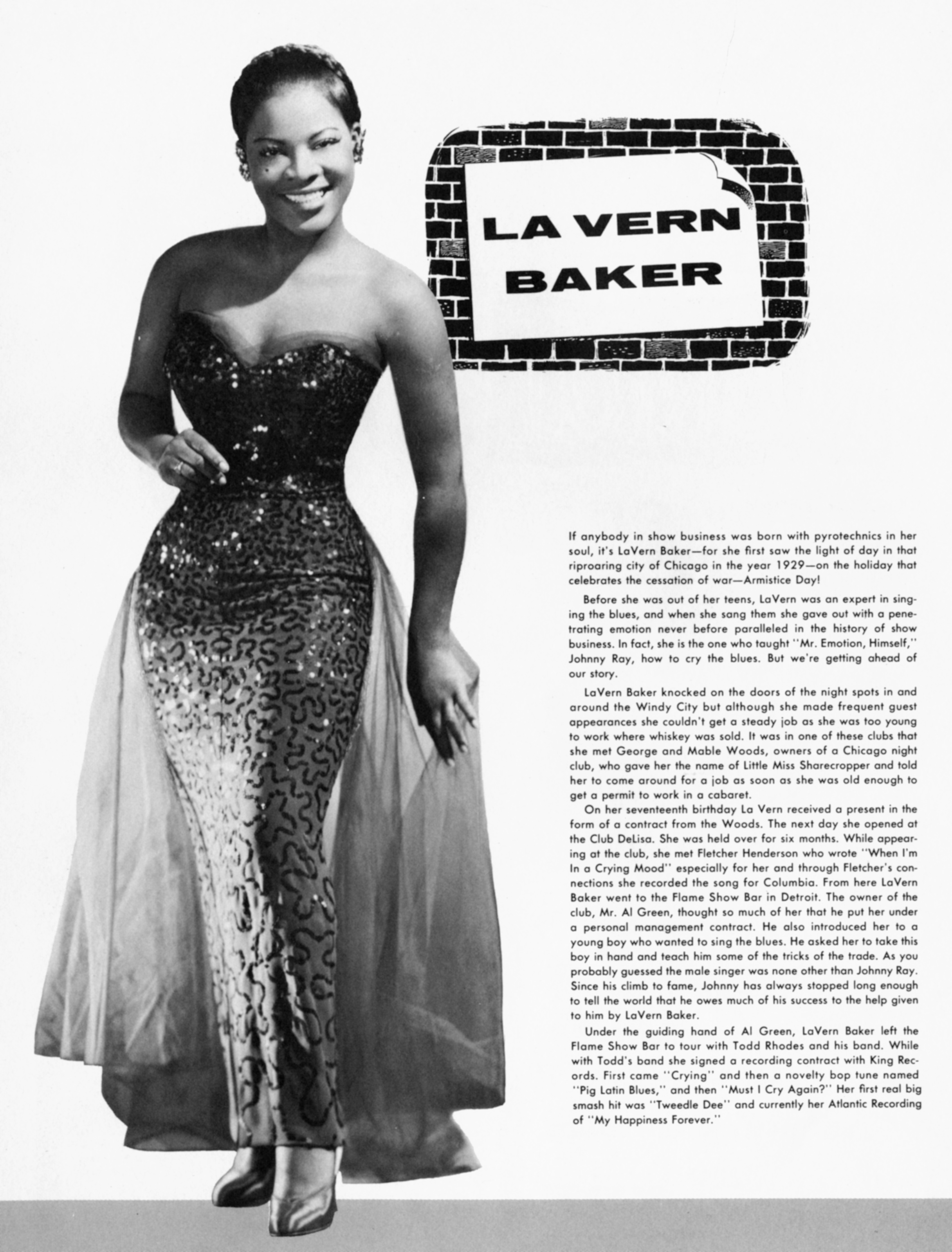 ![]() Photo of LaVern Baker. Image by Atlantic Records, via Wikimedia Commons. Licensed Public domain |