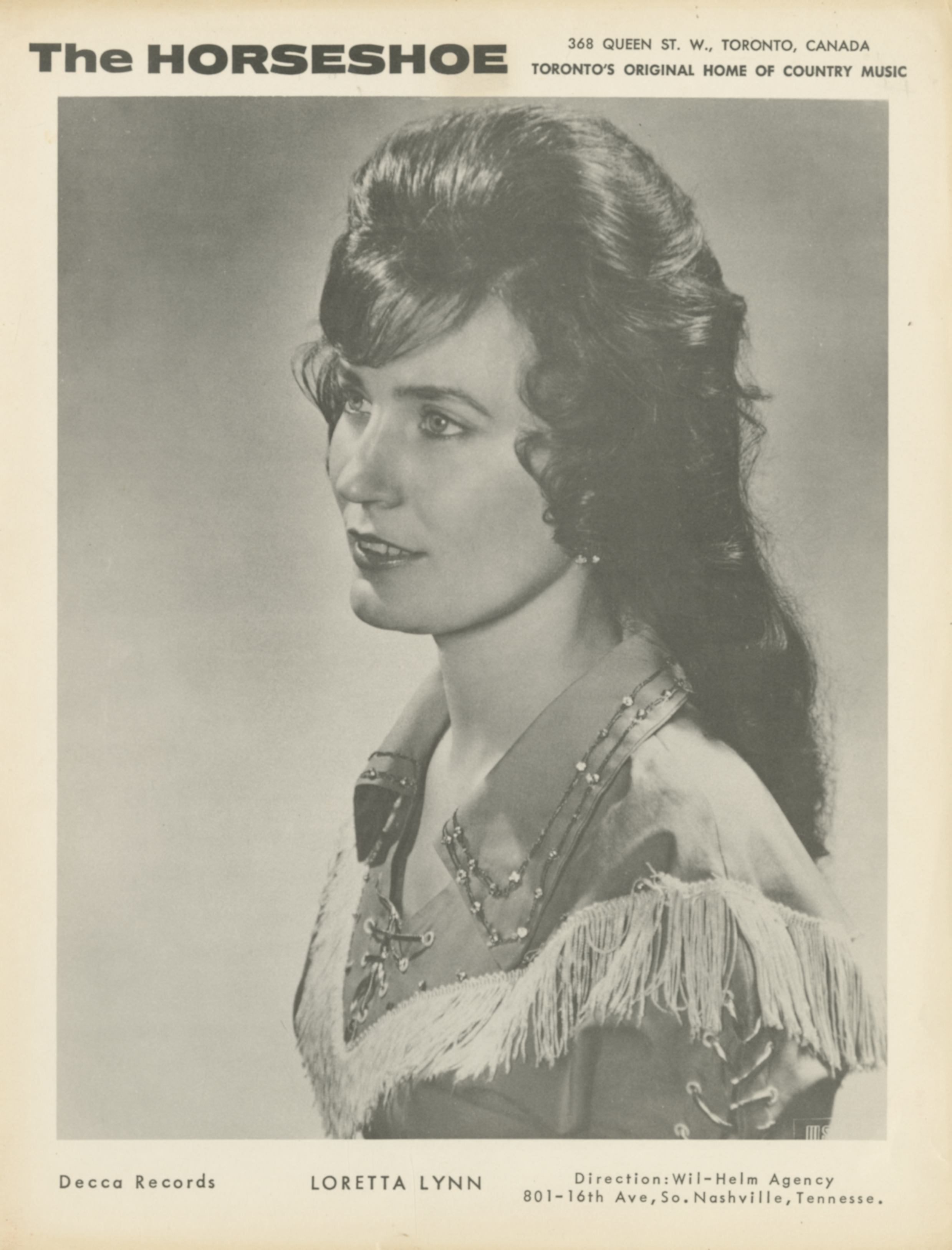![]() 1965 promotional image of Loretta Lynn. Image by Les Leverett, via Wikimedia Commons. Licensed Public domain |