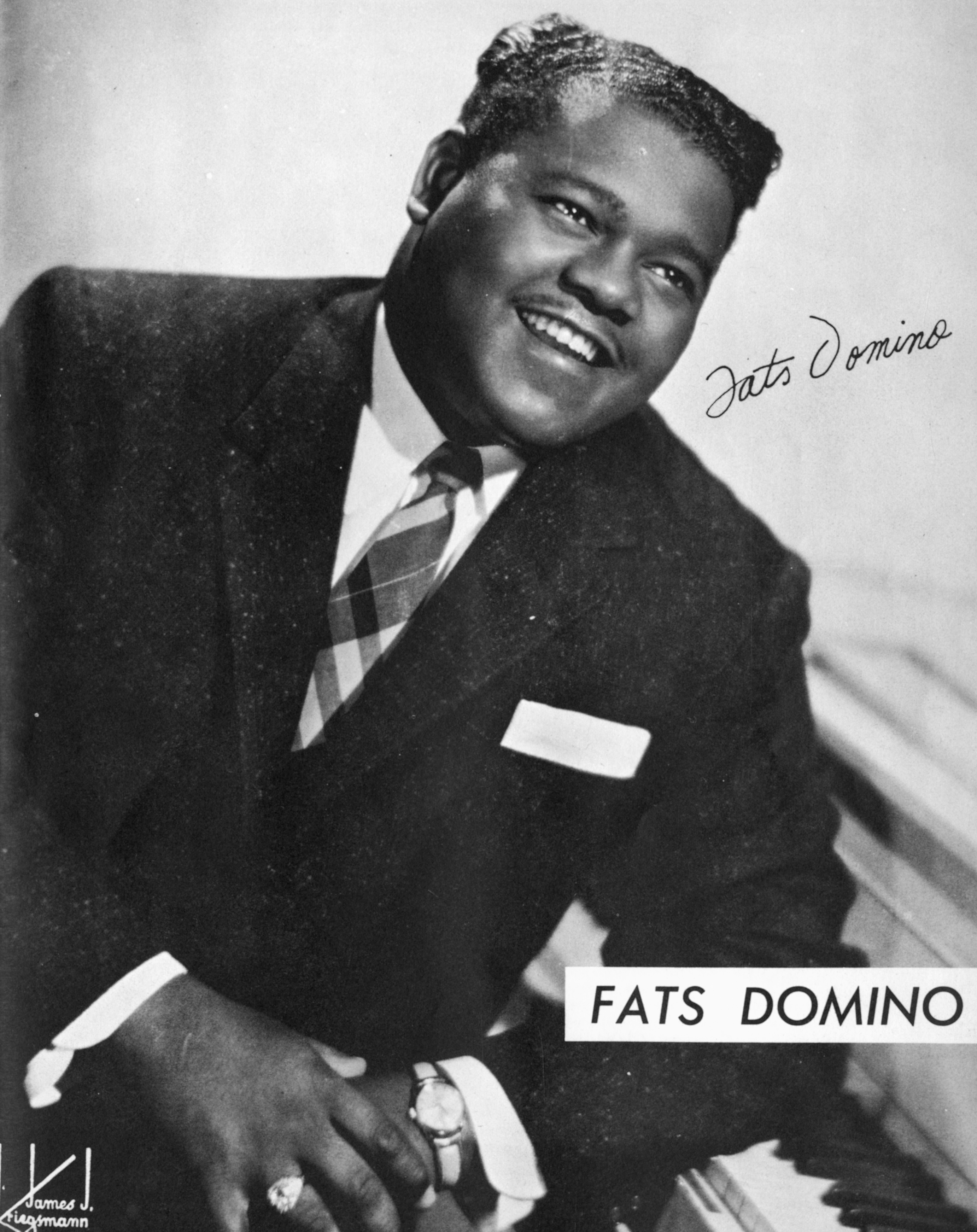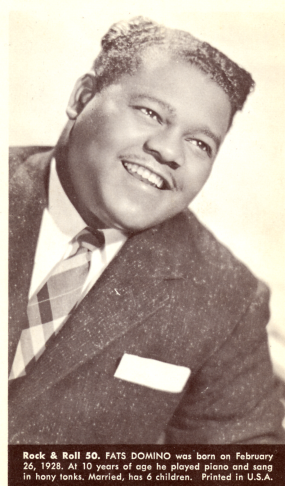 Fats DominoFats Domino Fats Domino American pianist and singer (1928–2017) Antoine Caliste Domino Jr.[1] (February 26, 1928 – October 24, 2017), known as Fats Domino, was an American singer-songwriter and pianist. One of the pioneers of rock and roll music, Domino sold more than 65 million records.[2] Born in New Orleans to a French Creole family, Domino signed to Imperial Records in 1949. His first single "The Fat Man" is cited by some historians as the first rock and roll single and the first to sell more than 1 million copies.[3][4] Domino continued to work with the song's co-writer Dave Bartholomew, contributing his distinctive rolling piano style to Lloyd Price's "Lawdy Miss Clawdy" (1952) and scoring a string of mainstream hits… (Source: Wikipedia)
