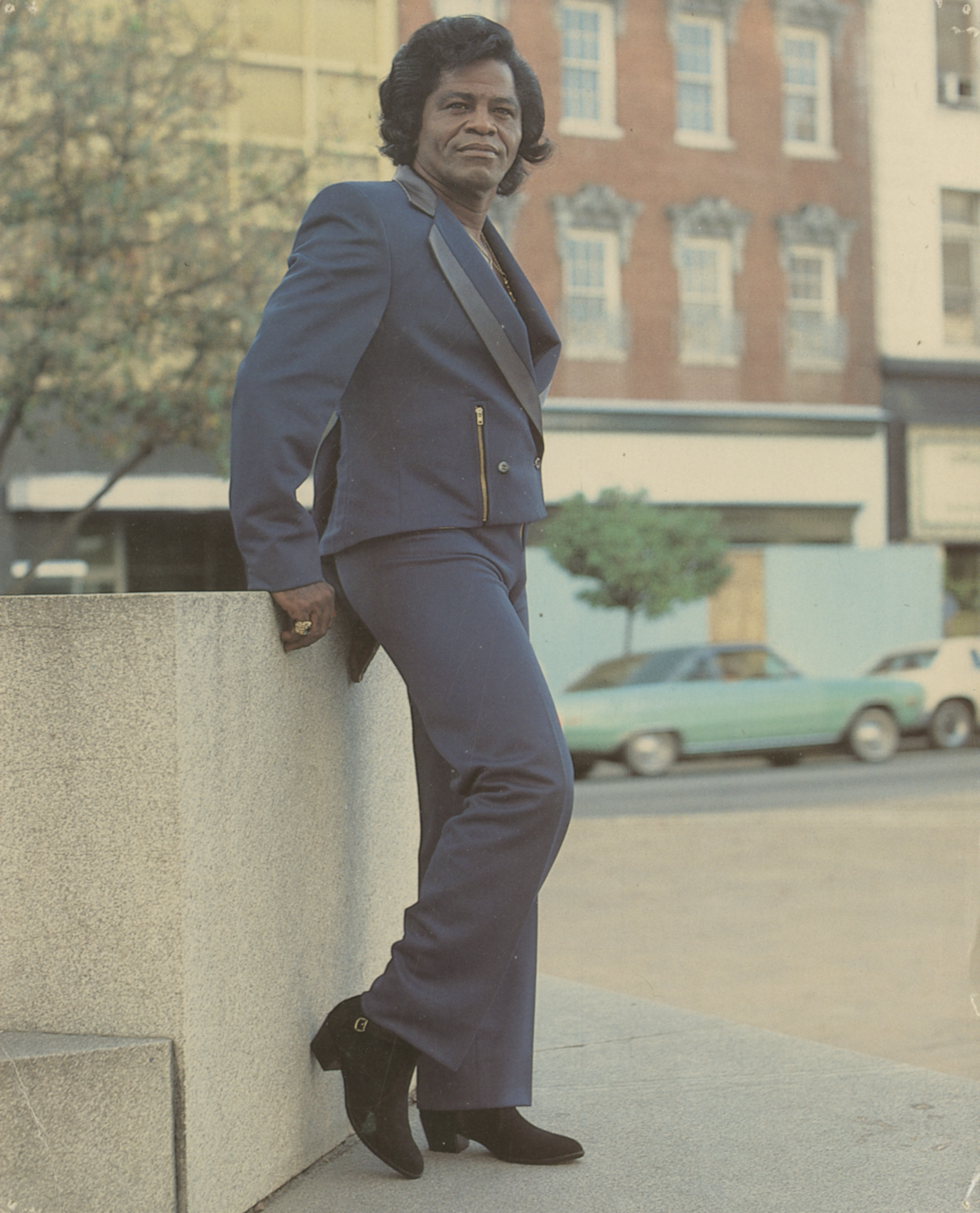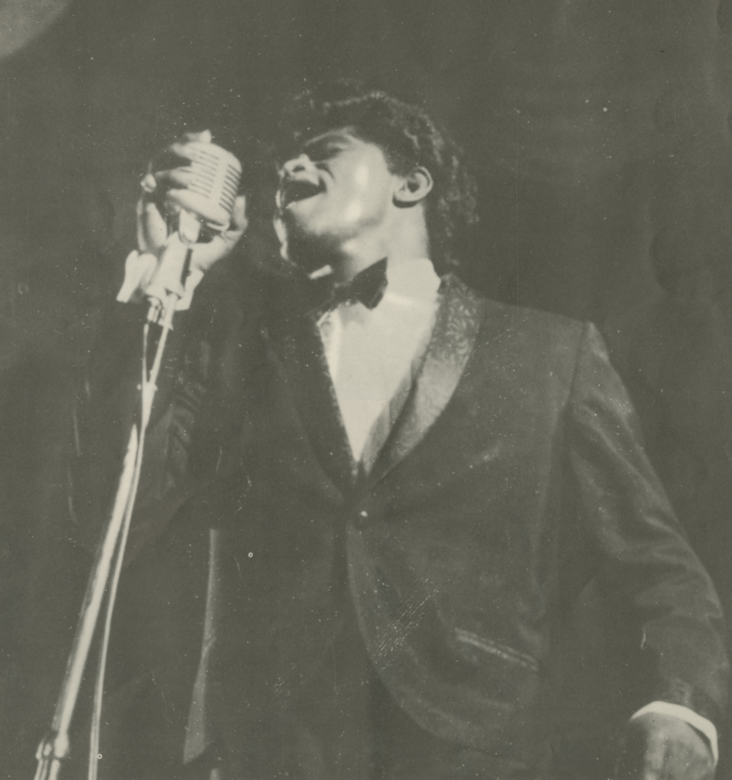 ![]() James Brown performing live in Hamburg, Germany, February 1973. Image by Heinrich Klaffs, via Wikimedia Commons. Licensed CC BY-SA 2.0 |