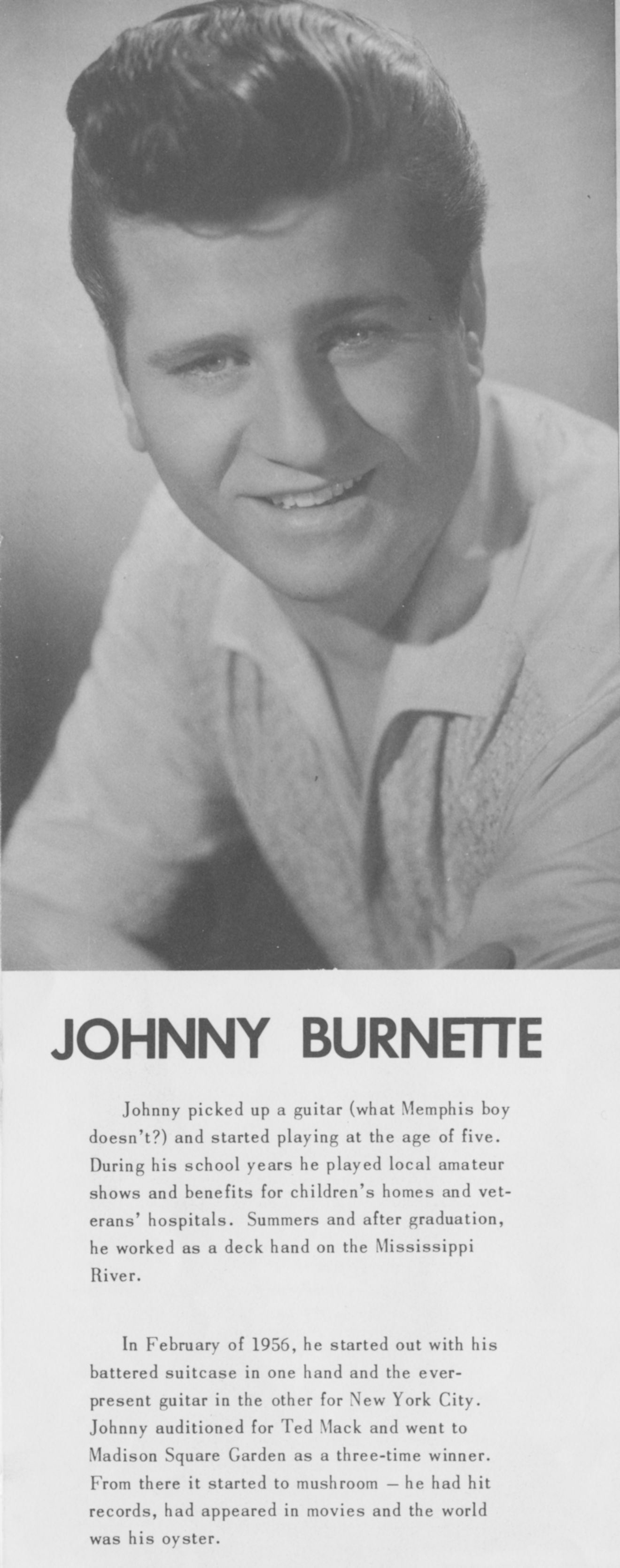 ![]() Johnny Burnette Image by Fotografía antigua (desconocido), via Wikimedia Commons. Licensed CC0 |