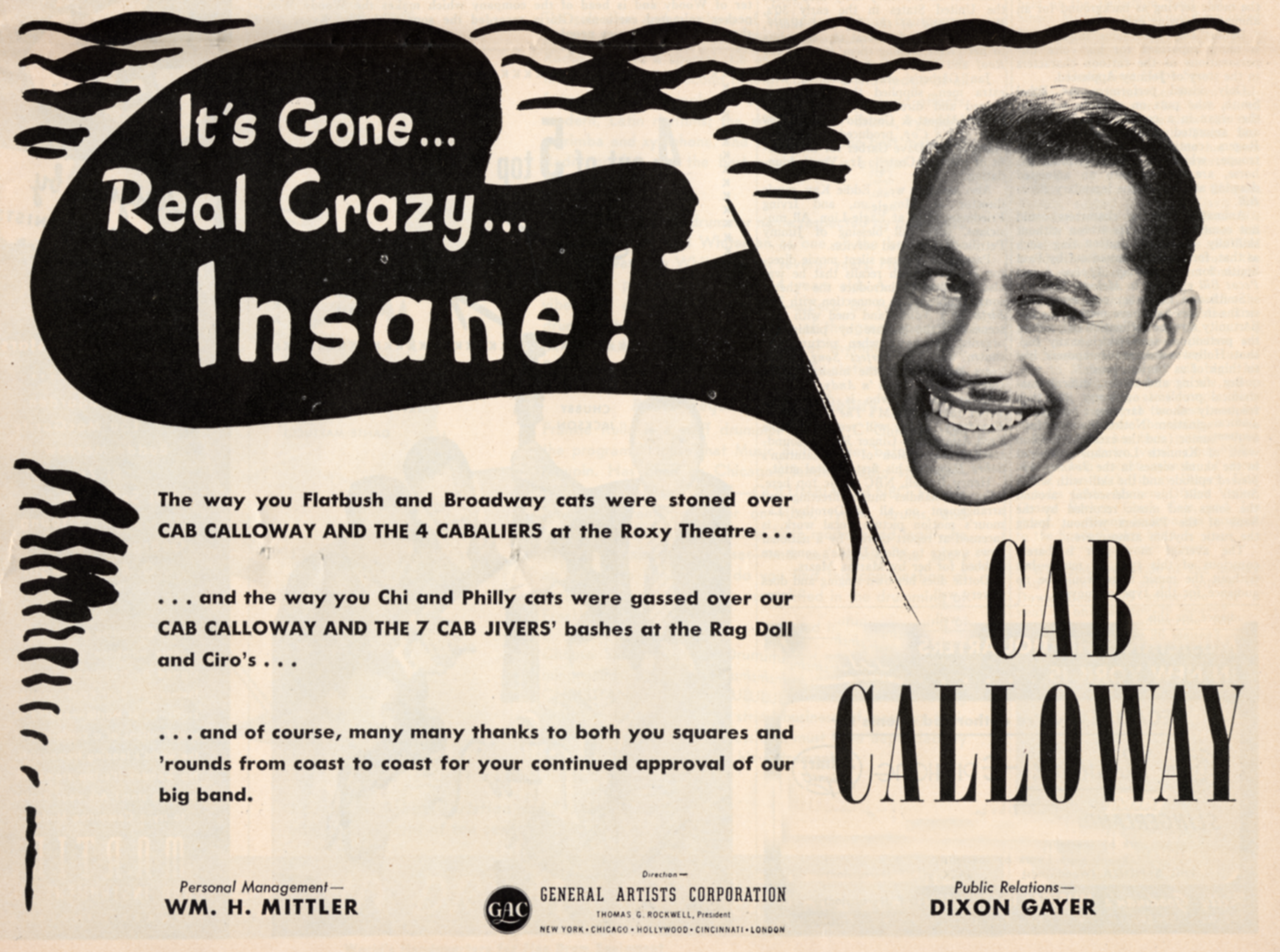 ![]() Portrait of Cab Calloway, Columbia studio, New York, N.Y., ca. Mar. 1947 Image by William P. Gottlieb, via Wikimedia Commons. Licensed Public domain |