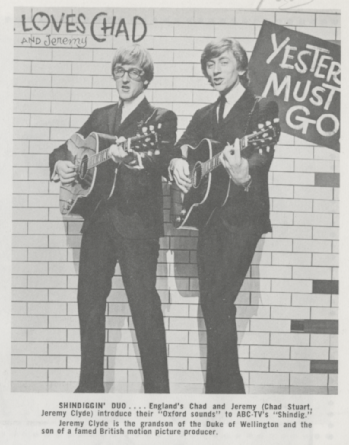 Publicity photo of Chad and Jeremy from a television special at Marineland aired by CBS Television. Image by CBS Television, via Wikimedia Commons. Licensed Public domain |