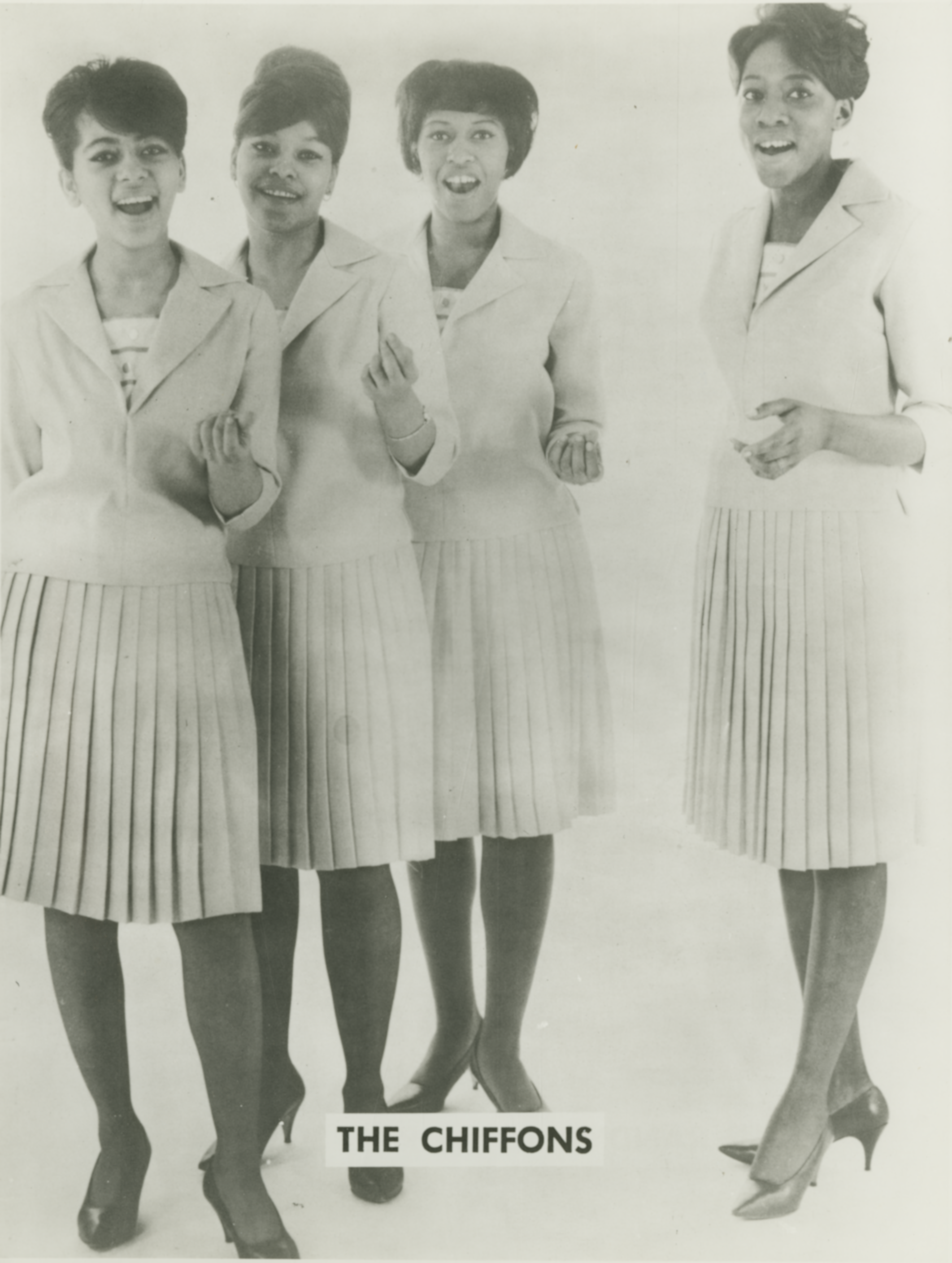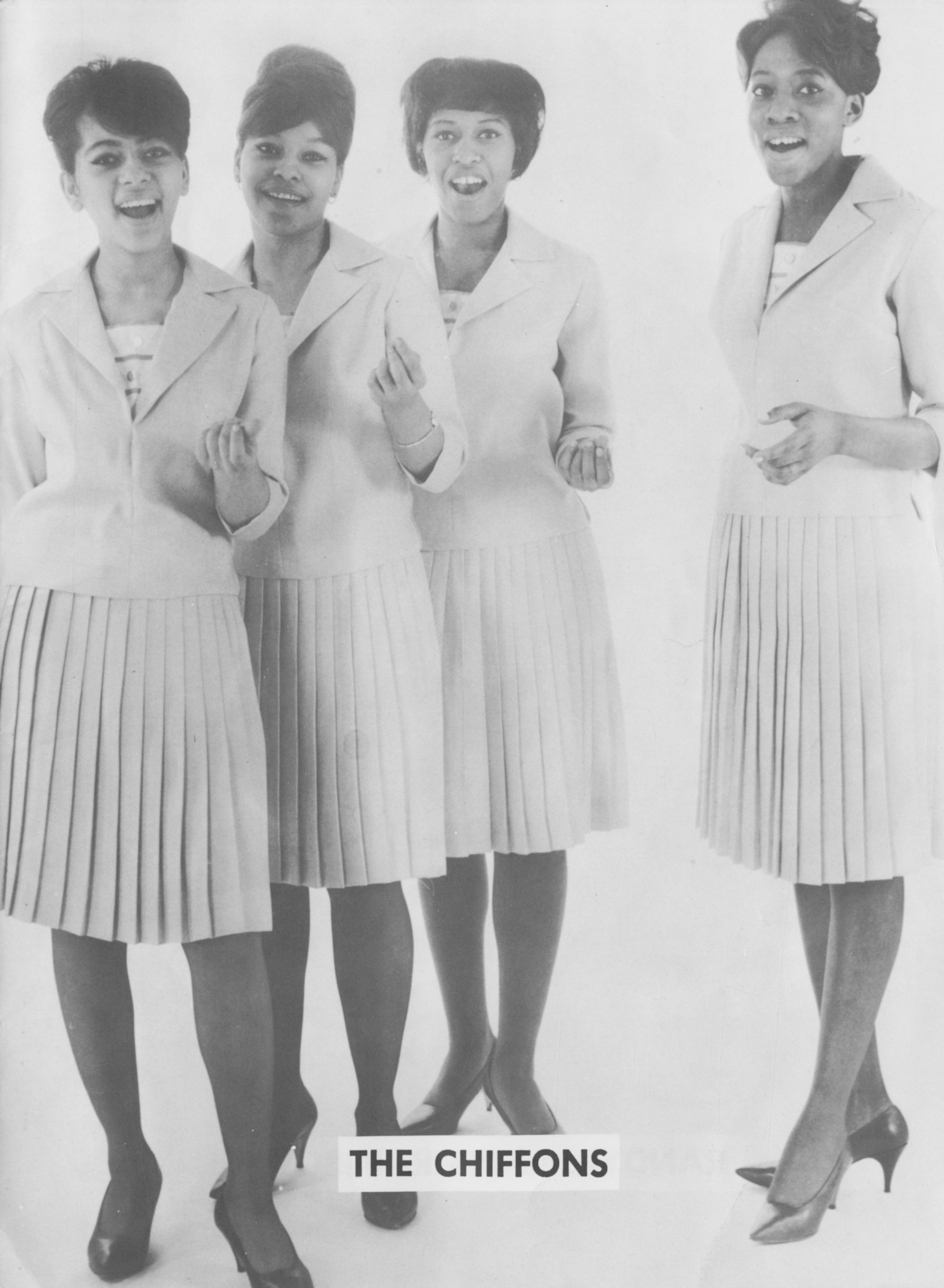 ![]() Photo of The Chiffons after they became a 4-girl group. Image by KRLA/Beat Publications-page 2, via Wikimedia Commons. Licensed Public domain |