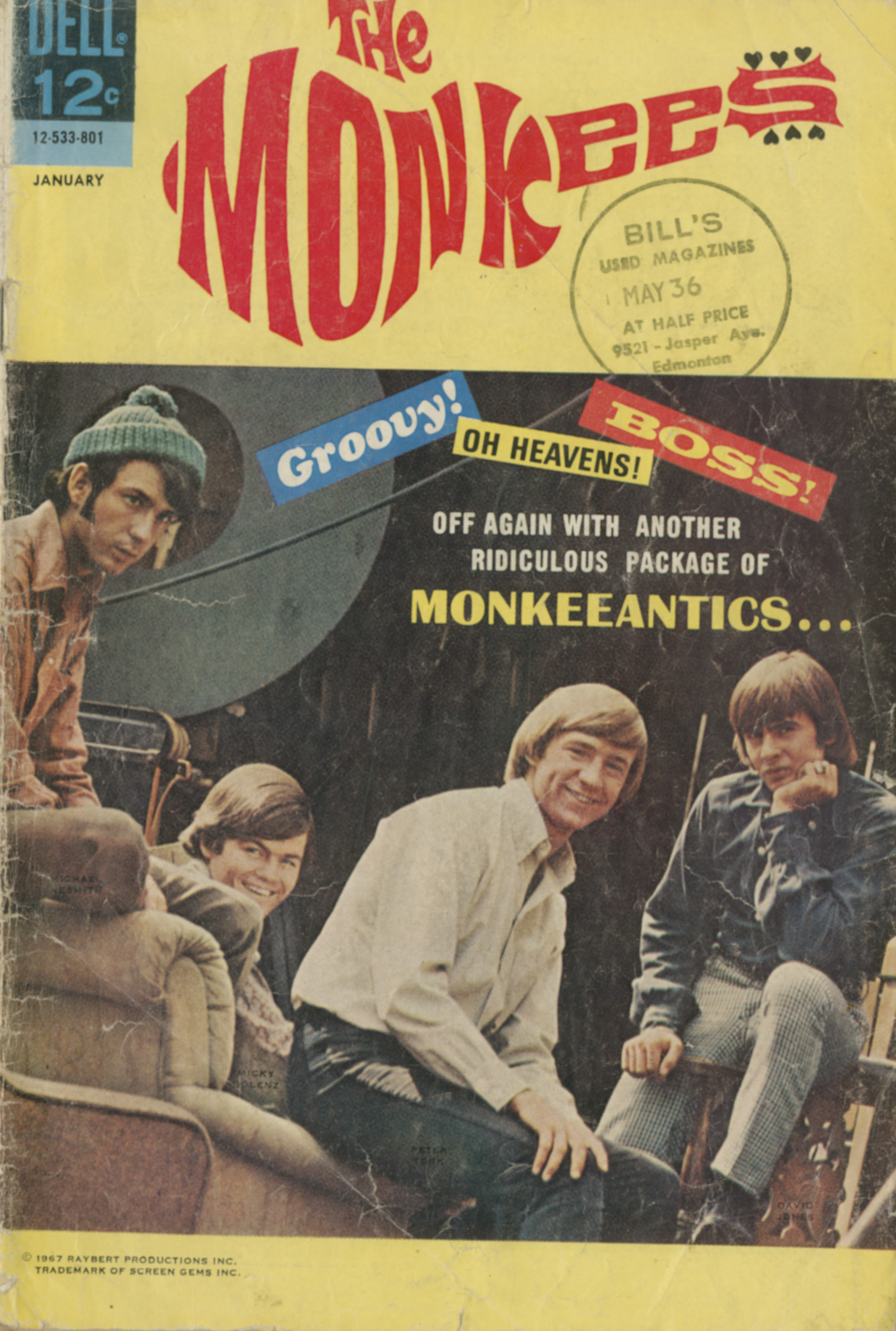 Photo of The Monkees. Image by NBC Television. The photo was also used to answer fan mail during the height of their popularity. The card had no copyright marks either., via Wikimedia Commons. Licensed Public domain |