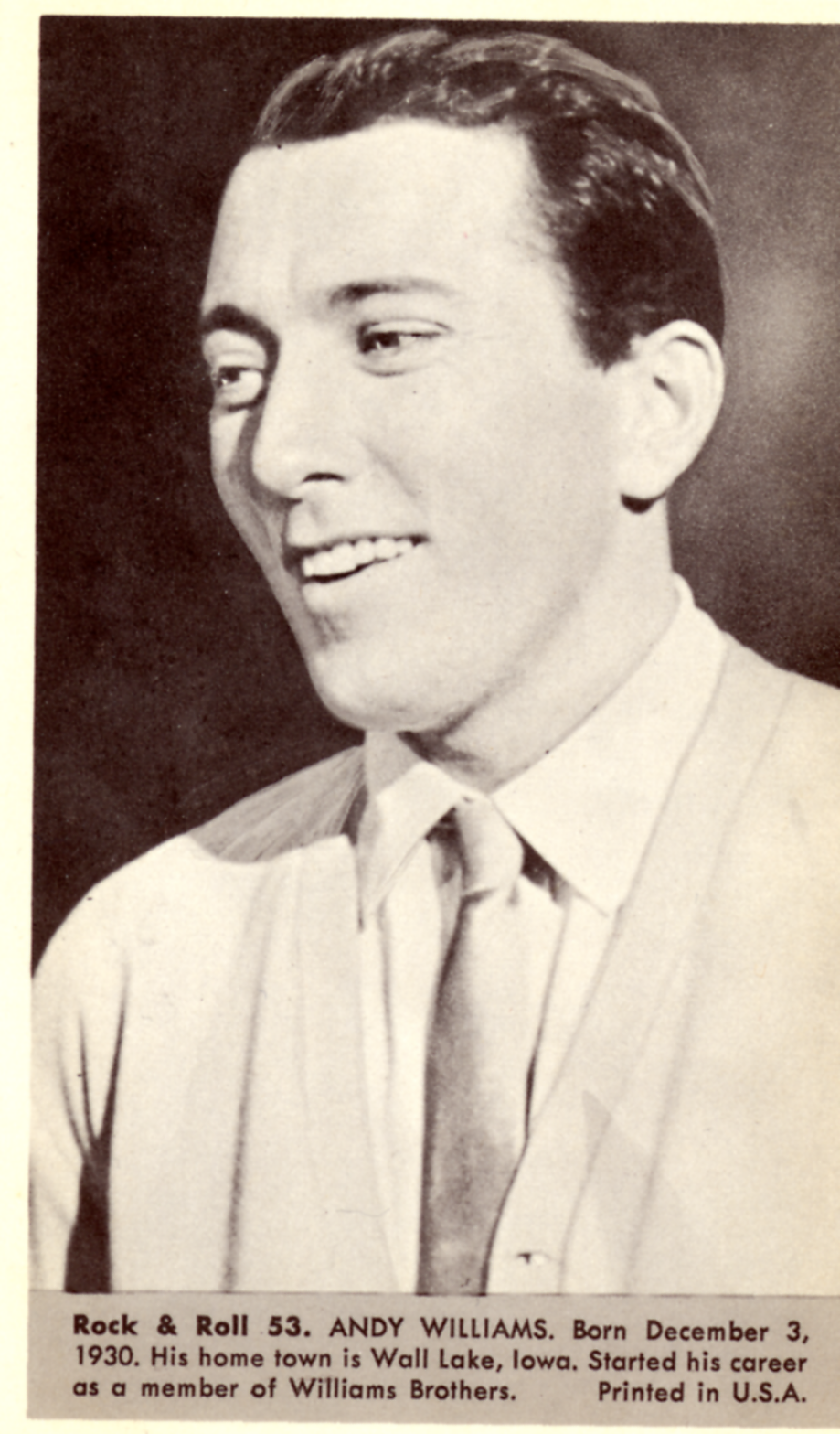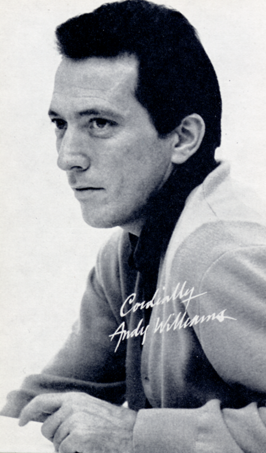 ![]() Publicity photo of Andy Williams in 1967. Image by Sheldon Saltman, Public Relations, via Wikimedia Commons. Licensed Public domain |