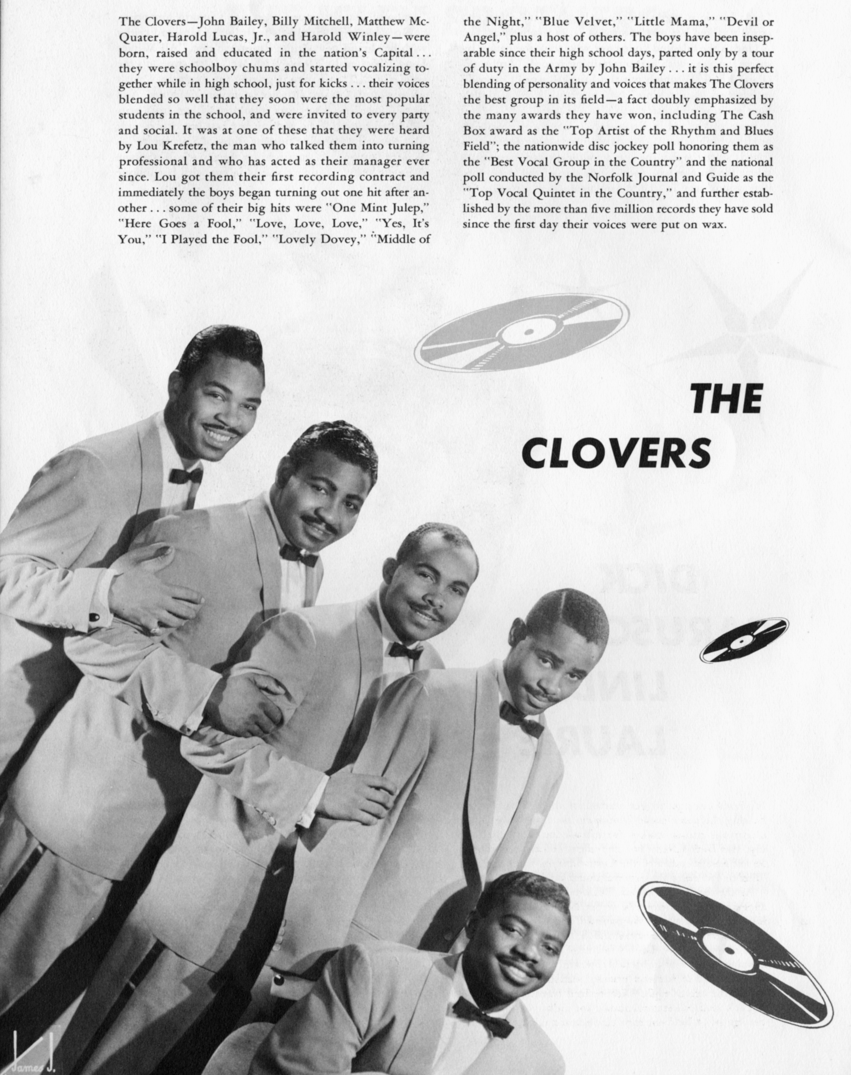 The CloversThe Clovers The Clovers American rhythm and blues/doo-wop vocal group The Clovers are an American rhythm and blues/doo-wop vocal group who became one of the biggest selling acts of the 1950s.[1] They had a top 30 US hit in 1959 with the Leiber and Stoller song "Love Potion No. 9". Quick facts Background information, Origin ... The Clovers Background information Origin Washington, D.C., U.S. Genres R&B, rock and roll, doo wop Years active 1946–present Labels Atlantic, United Artists Members Harold Winley Carlos Wilson Tyrone Burwell Franklen Poole Edward "Ike" Bowers Past members John "Buddy" Bailey Harold Lucas Charlie White Matthew McQuater Bill Harris Billy Mitchell Thomas Woods Billy Shelton John Phillip Charles R. Stevens James "Toy" Walton Robert Russell Roosevelt… (Source: Wikipedia)