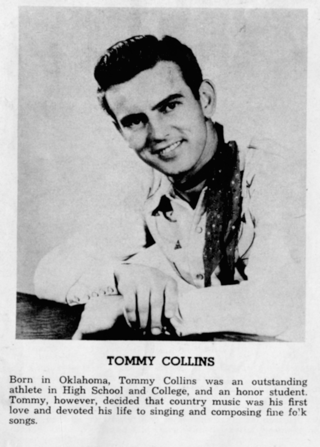 Tommy CollinsTommy Collins Tommy Collins Topics referred to by the same term Tommy Collins may refer to: Tommy Collins (filmmaker) (died 2022), Irish filmmaker Tommy Collins (singer) (1930–2000), American country music singer and songwriter See also Thomas Collins (disambiguation) Tom Collins (disambiguation) This disambiguation page lists articles about people with the same name. If an internal link led you here, you may wish to change the link to point directly to the intended article.… (Source: Wikipedia)