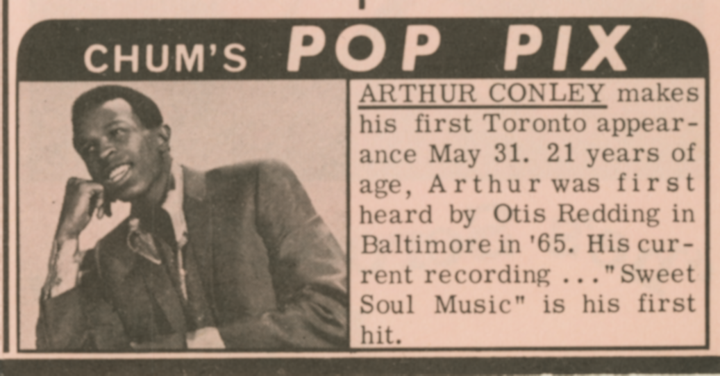 Arthur ConleyArthur Conley Arthur Conley American soul singer (1946–2003) Arthur Lee Conley (January 4, 1946 – November 17, 2003), also known in later years as Lee Roberts, was an American soul singer, best known for the 1967 hit "Sweet Soul Music".[1] Quick facts Background information, Also known as ... Arthur Conley Arthur Conley in 1967 Background information Also known as Lee Roberts Born Arthur Lee Conley (1946-01-04)January 4, 1946 McIntosh County, Georgia, U.S. Died November 17, 2003(2003-11-17) (aged 57) Ruurlo, Netherlands Genres Soul Occupation Singer Years active 1959–1988 Close Early life Conley was born in McIntosh County, Georgia, U.S., and grew up in Atlanta. He first recorded in 1959 as the lead singer of Arthur & the Corvets. With this group,… (Source: Wikipedia)