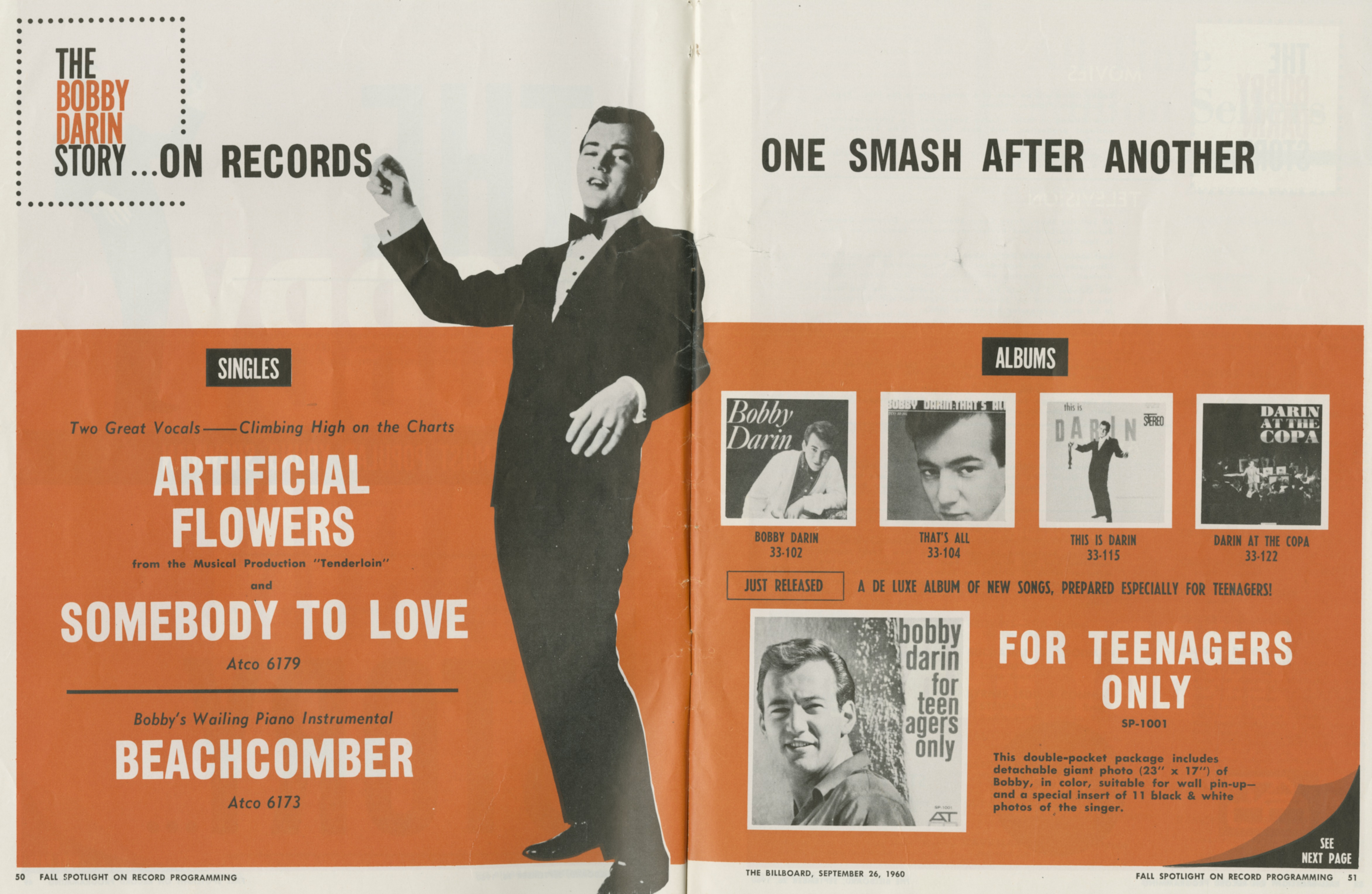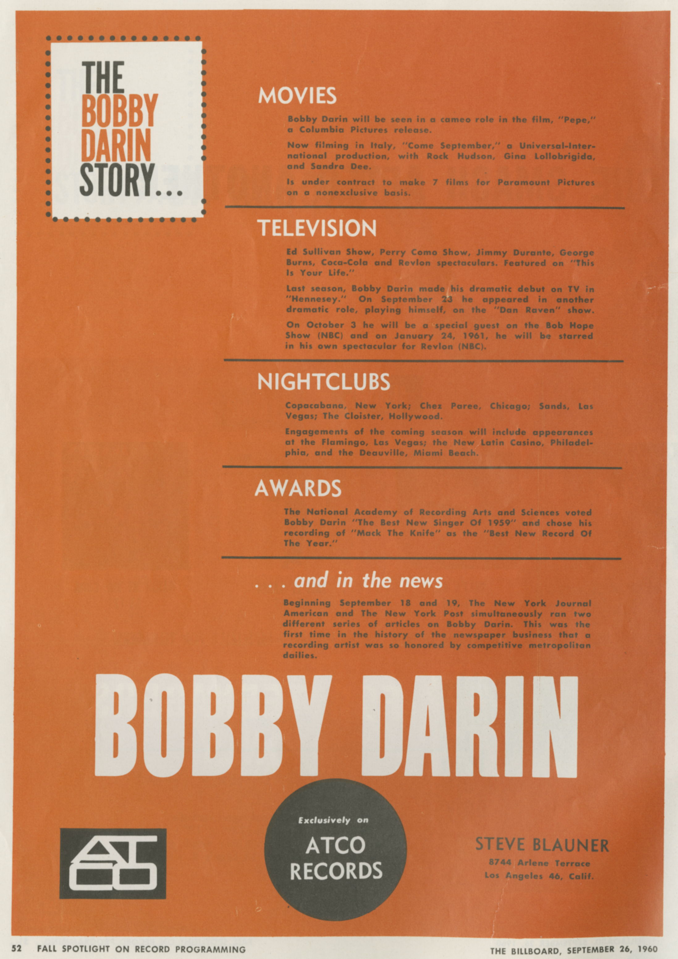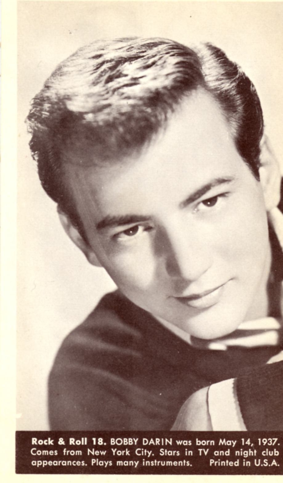 Publicity photo of Bobby Darin. Image by General Artists Corporation (management)/photographer: "Bruno of Hollywood", via Wikimedia Commons. Licensed Public domain |