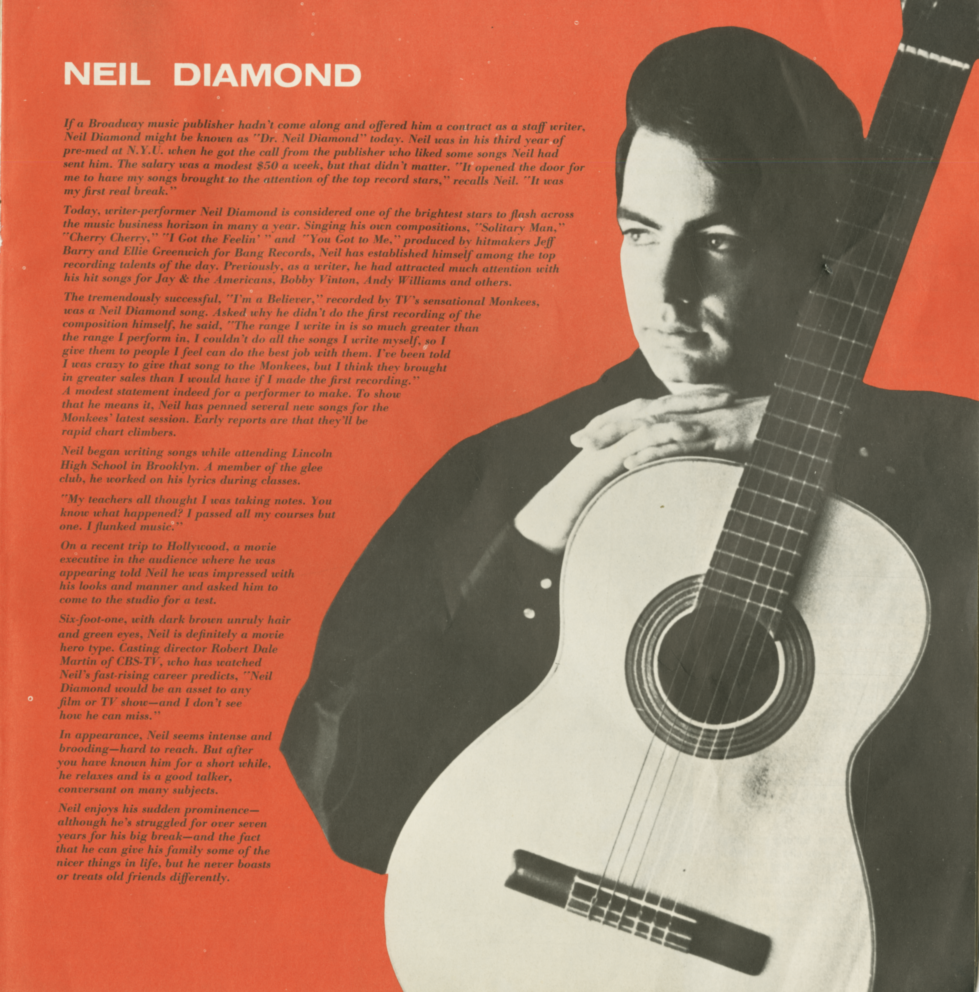 Neil DiamondNeil Diamond Neil Diamond American singer-songwriter (born 1941) This article is about the American singer-songwriter. For the Cree-Canadian filmmaker, see Neil Diamond (filmmaker). Neil Leslie Diamond (born January 24, 1941)[1] is an American singer-songwriter. He has sold more than 56.5 million records in the US alone, making him one of the best-selling musicians in history.[2][3][4] Quick facts Born, Occupations ... Neil Diamond Diamond in 2012 Born Neil Leslie Diamond (1941-01-24) January 24, 1941 (age 85) New York City, U.S. Occupations Singer songwriter musician actor Years active 1962–present Spouses Jaye Posner (m. 1963; div. 1969) Marcia Murphey (m. 1969; div. 1996) [a] Katie McNeil (m. 2012) Children 4 Musical career Genres Pop rock Instruments Vocals guitar… (Source: Wikipedia)
