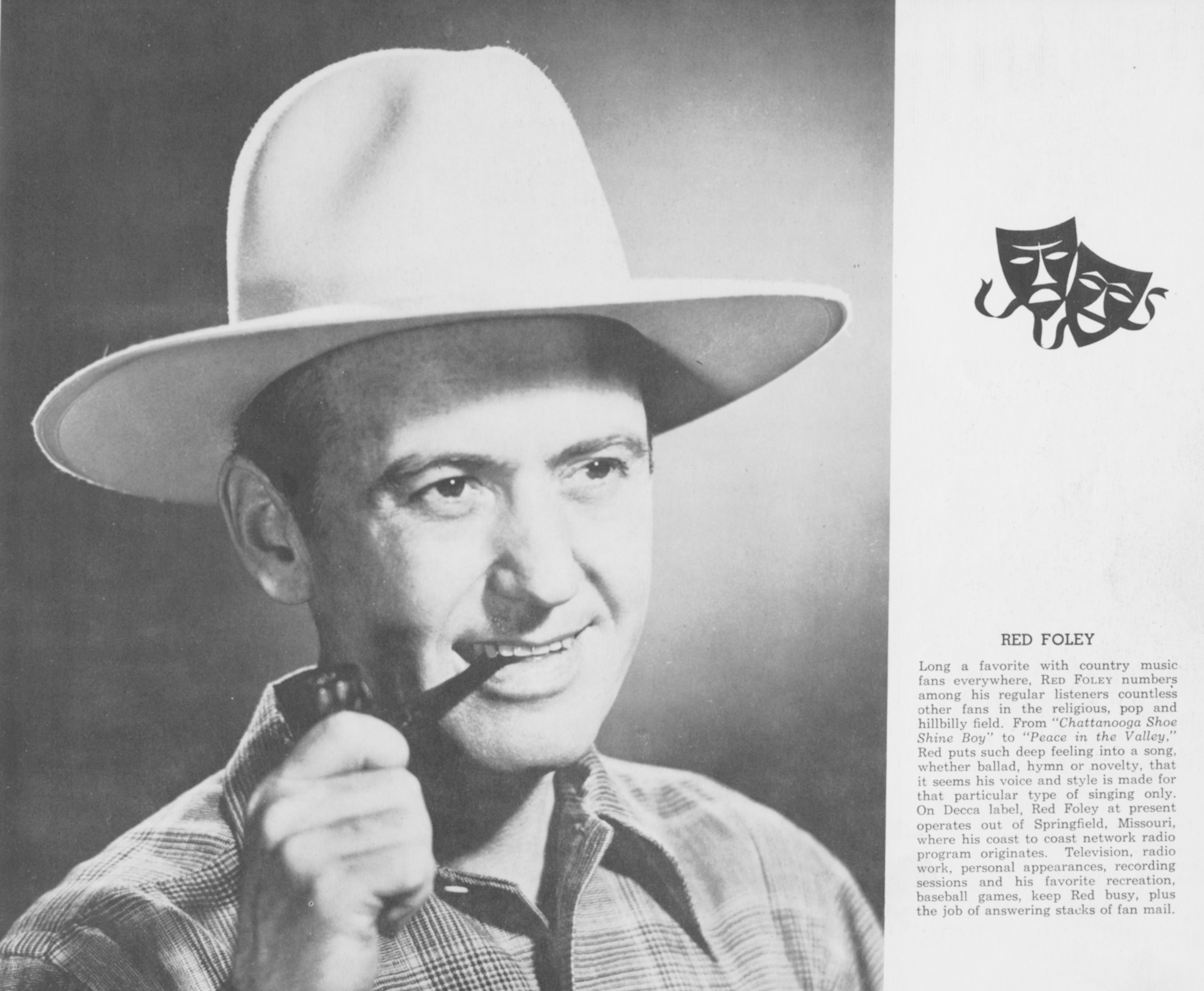 Red FoleyRed Foley Red Foley American country musician (1910–1968) For the sportswriter, see Red Foley (sportswriter). Clyde Julian "Red" Foley (June 17, 1910 – September 19, 1968)[1] was an American musician who made a major contribution to the growth of country music after World War II. For more than two decades, Foley was one of the biggest stars of the genre, selling more than 25 million records. His 1951 hit, "Peace in the Valley", was among the first million-selling gospel records. A Grand Ole Opry veteran until his death, Foley also hosted the first popular country music series on network television, Ozark Jubilee, from 1955 to 1960. Quick facts Background information, Also known as ... Red Foley Background information Also known… (Source: Wikipedia)