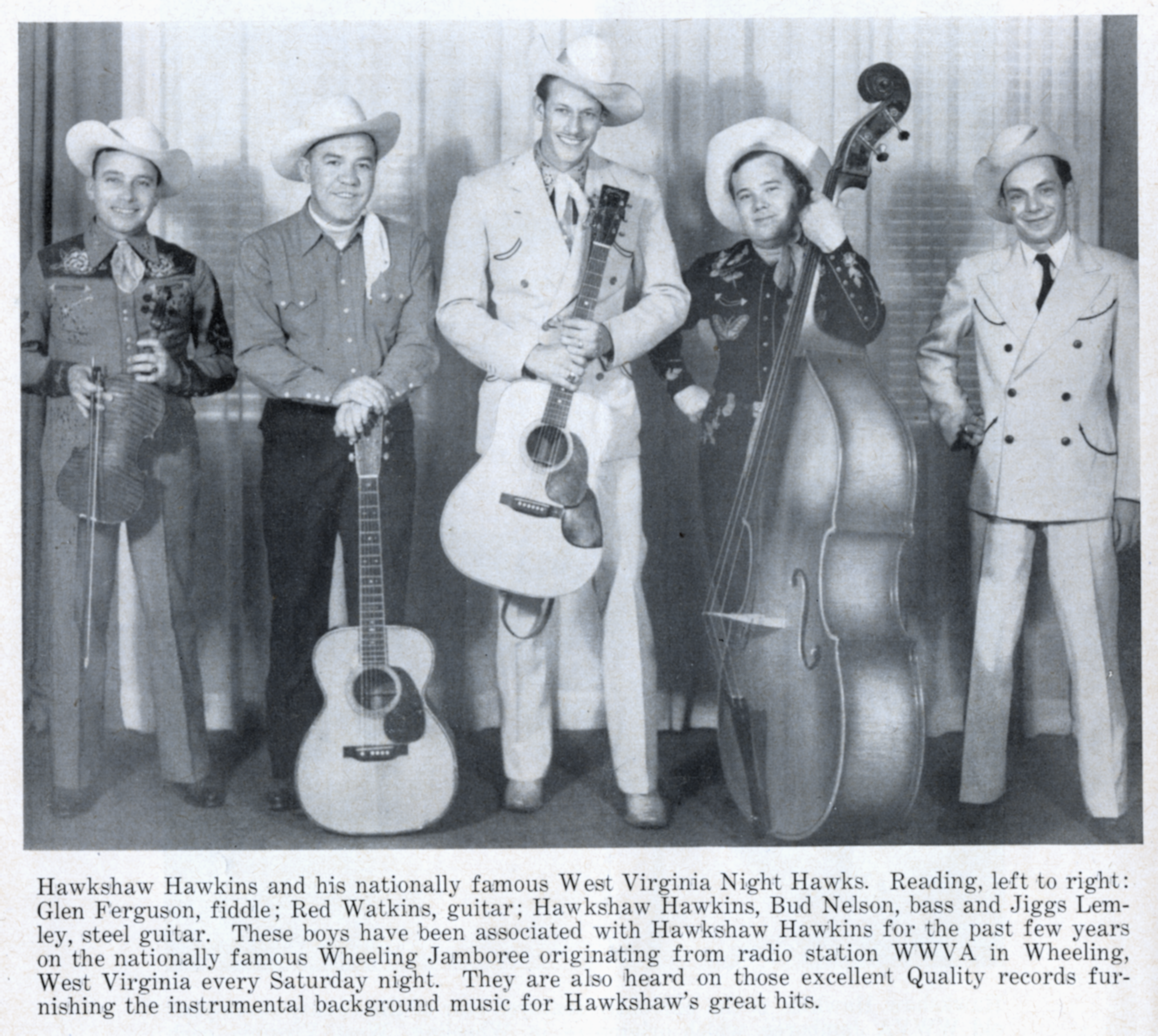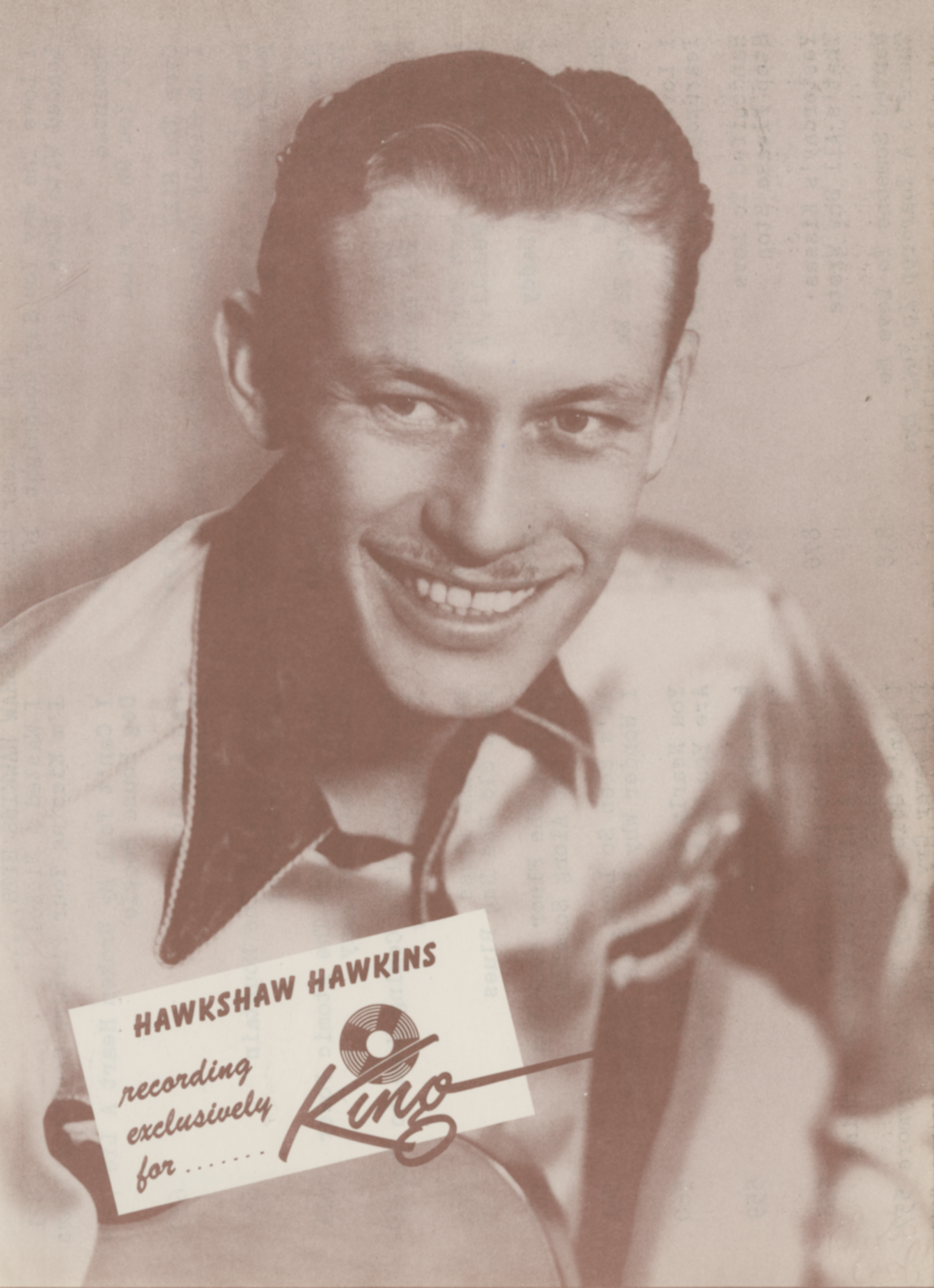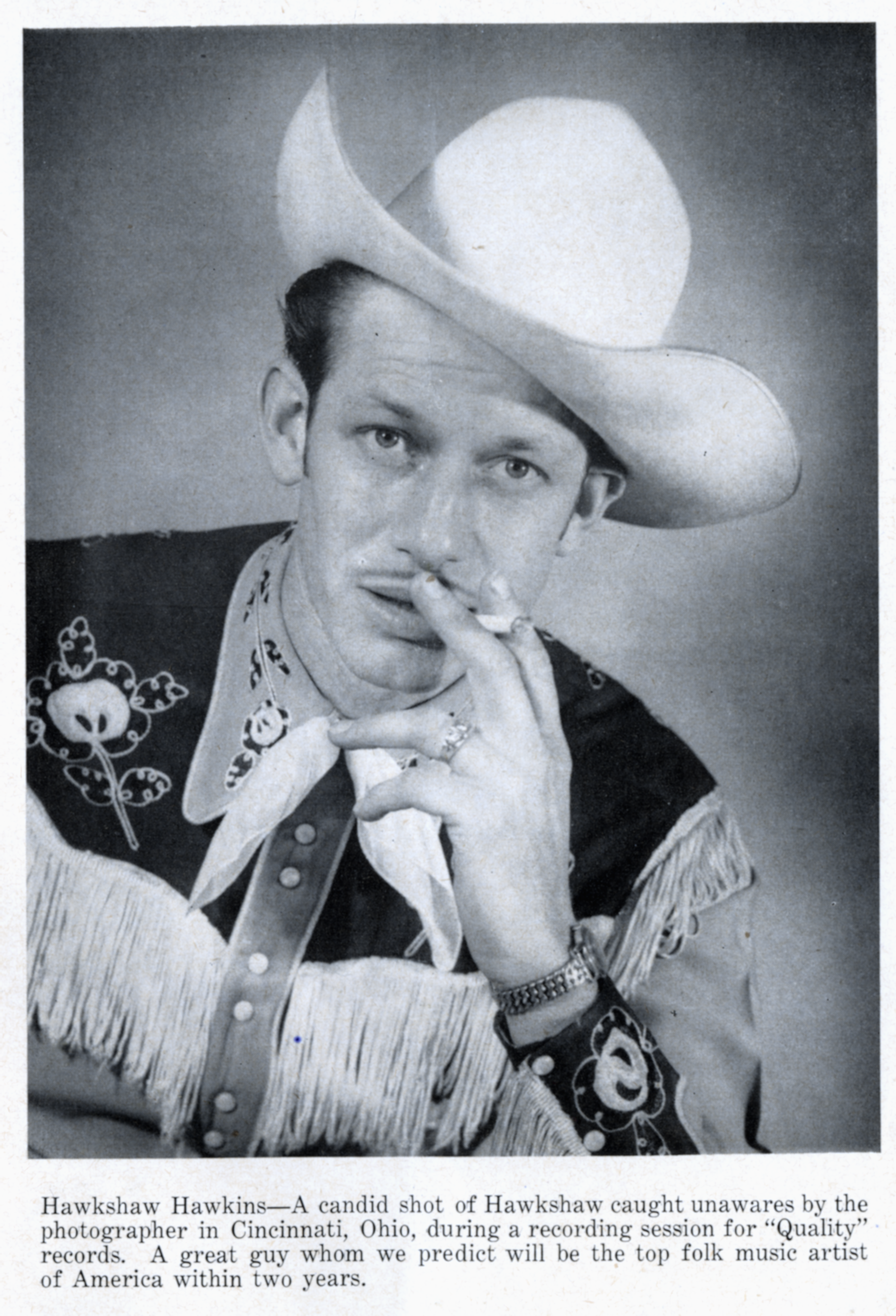![]() Hawkshaw Hawkins in Opry magazine, circa 1957. Image by unknown author, via Wikimedia Commons. Licensed Public domain |