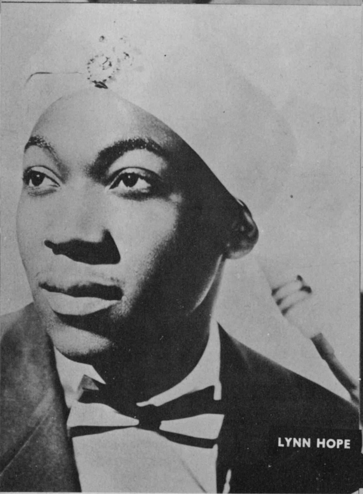 Lynn HopeLynn Hope Lynn Hope American jazz musician Lynn Hope, also known as El Hajj Abdullah Rasheed Ahmad, (September 26, 1926[1] – February 24, 1993)[2] was an American jazz and blues tenor saxophonist. He was born in Birmingham, Alabama, United States.[2] Hope was noted for his instrumental remakes of established pre-rock pop anthems.[3] Hope joined King Kolax's band when he graduated from high school in Birmingham during the 1940s. After converting to Islam, he became noted for wearing a turban or fez.[3] Hope signed with Miracle Records in 1950, but the contract proved invalid.[3] He moved to Premium Records, where he recorded "Tenderly," a song that was later picked up by Chess Records.[3] Hope recorded often for Aladdin Records between 1951… (Source: Wikipedia)