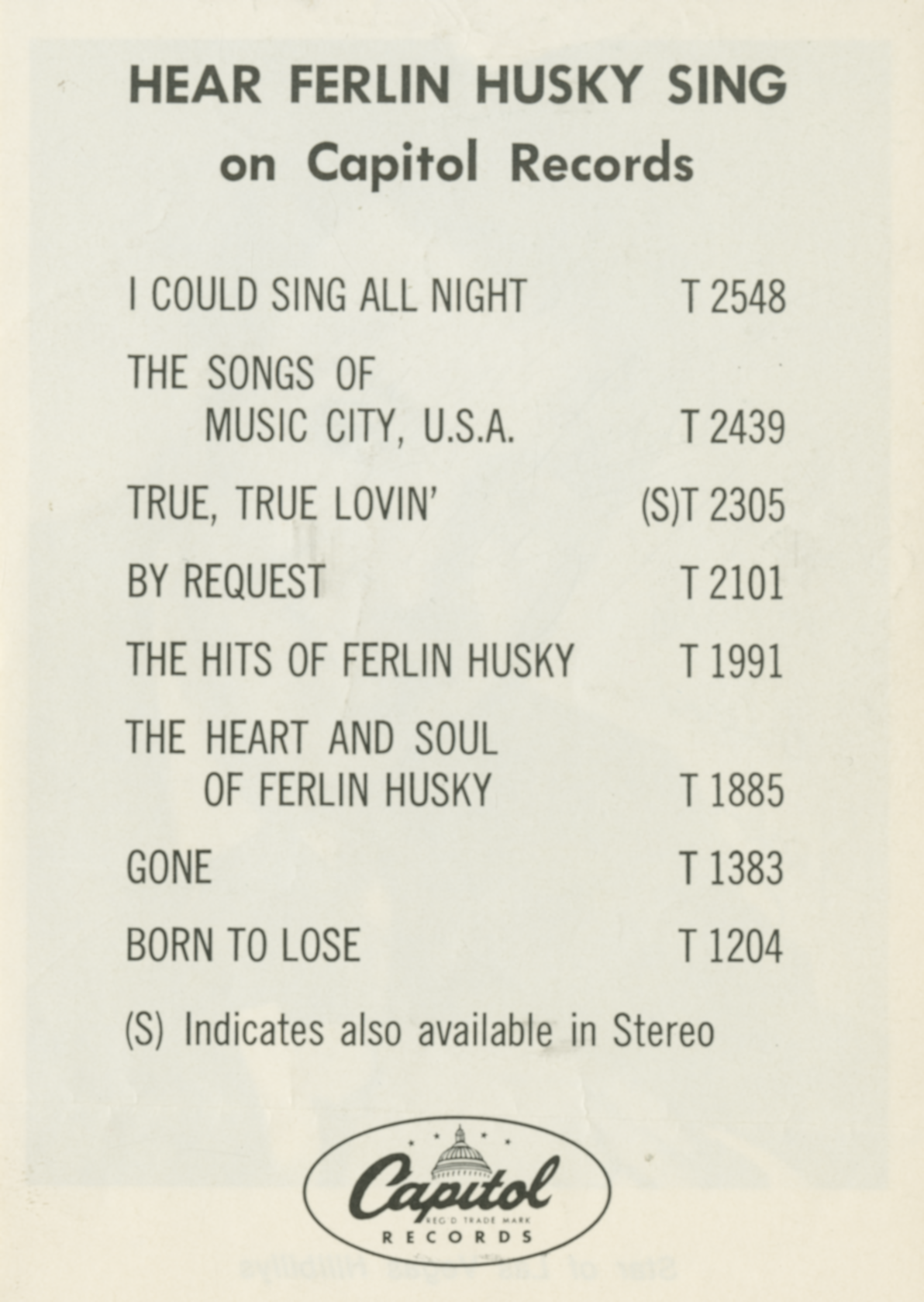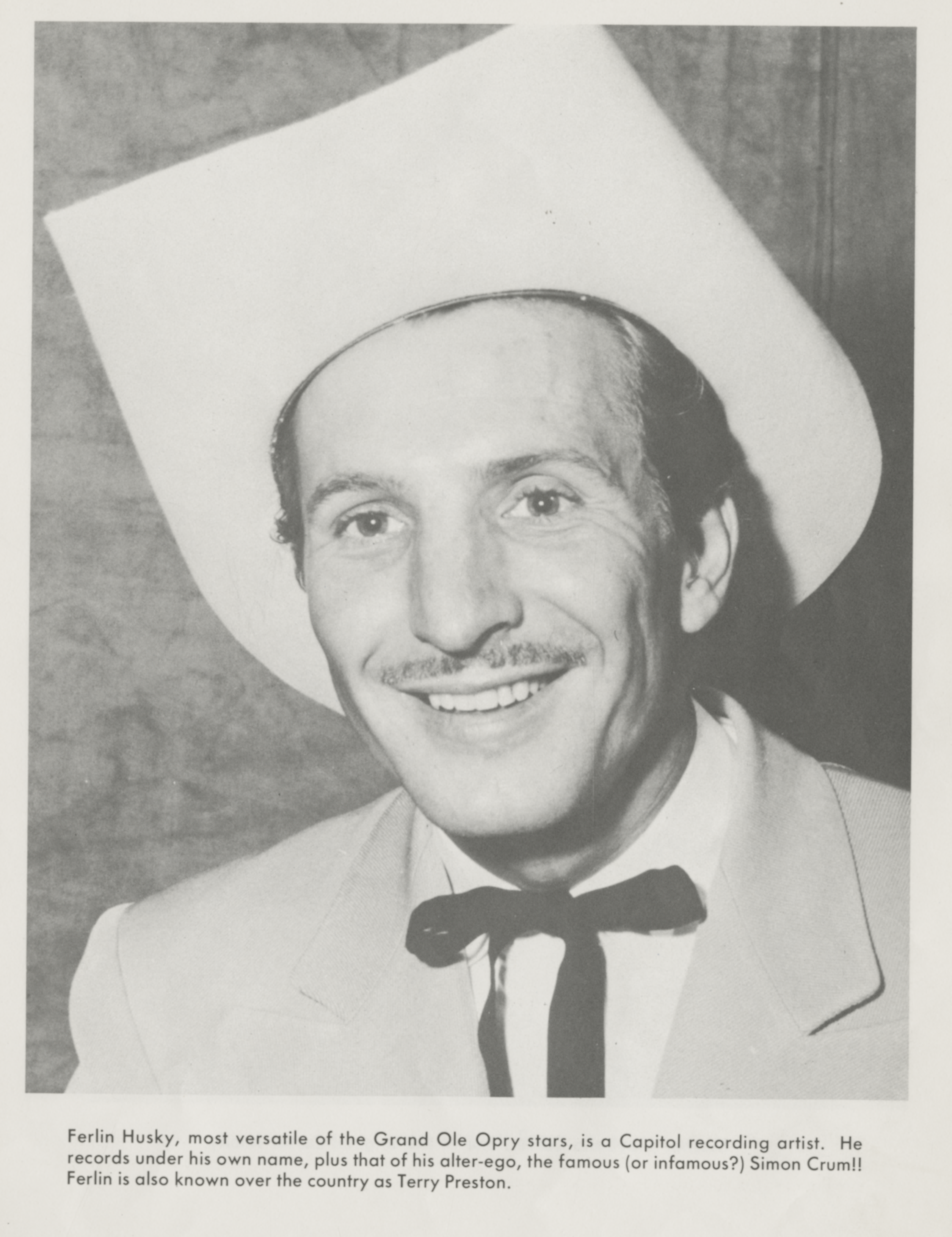 Photo of country singer Ferlin Husky. Image by Hubert Long (manager), via Wikimedia Commons. Licensed Public domain |