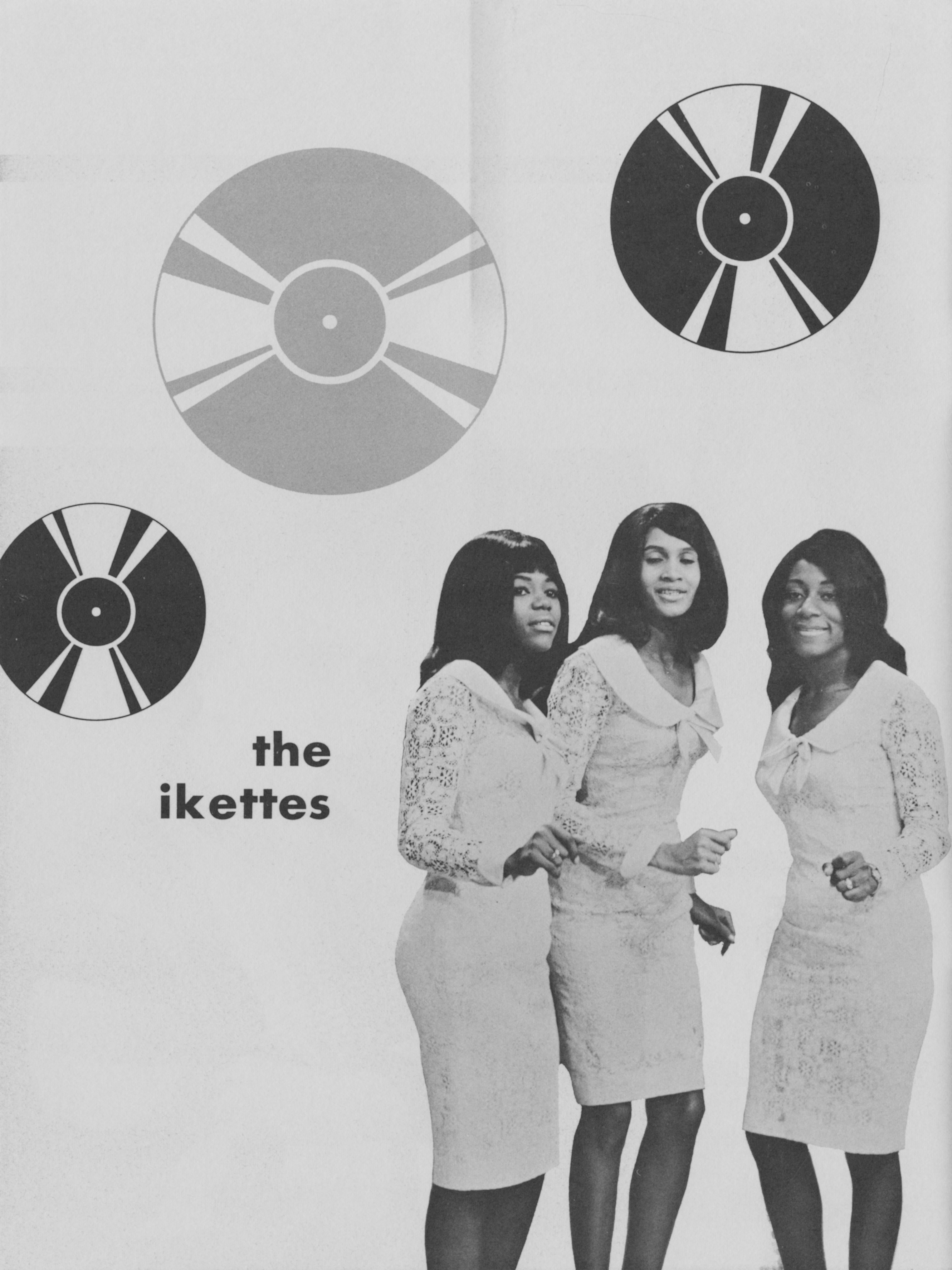 The IkettesThe Ikettes The Ikettes American backing vocalists for the Ike & Tina Turner Revue The Ikettes, originally The Artettes, were a trio (sometimes quartet) of female backing vocalists for the Ike & Tina Turner Revue. Despite their origins, the Ikettes became successful artists in their own right. In the 1960s they had hits such as "I'm Blue (The Gong-Gong Song)" and "Peaches 'N' Cream". In 2017, Billboard ranked "I'm Blue (The Gong-Gong Song)" No. 63 on its list of 100 Greatest Girl Group Songs of All Time.[1] Quick facts Background information, Genres ... The Ikettes The Ikettes in 1968. Left to right: Margaret Ann Thomas, Maxayn Lewis, Pat Powdrill, Mary Jean Brown. Background information Genres R&B, soul, pop Occupations Backing… (Source: Wikipedia)