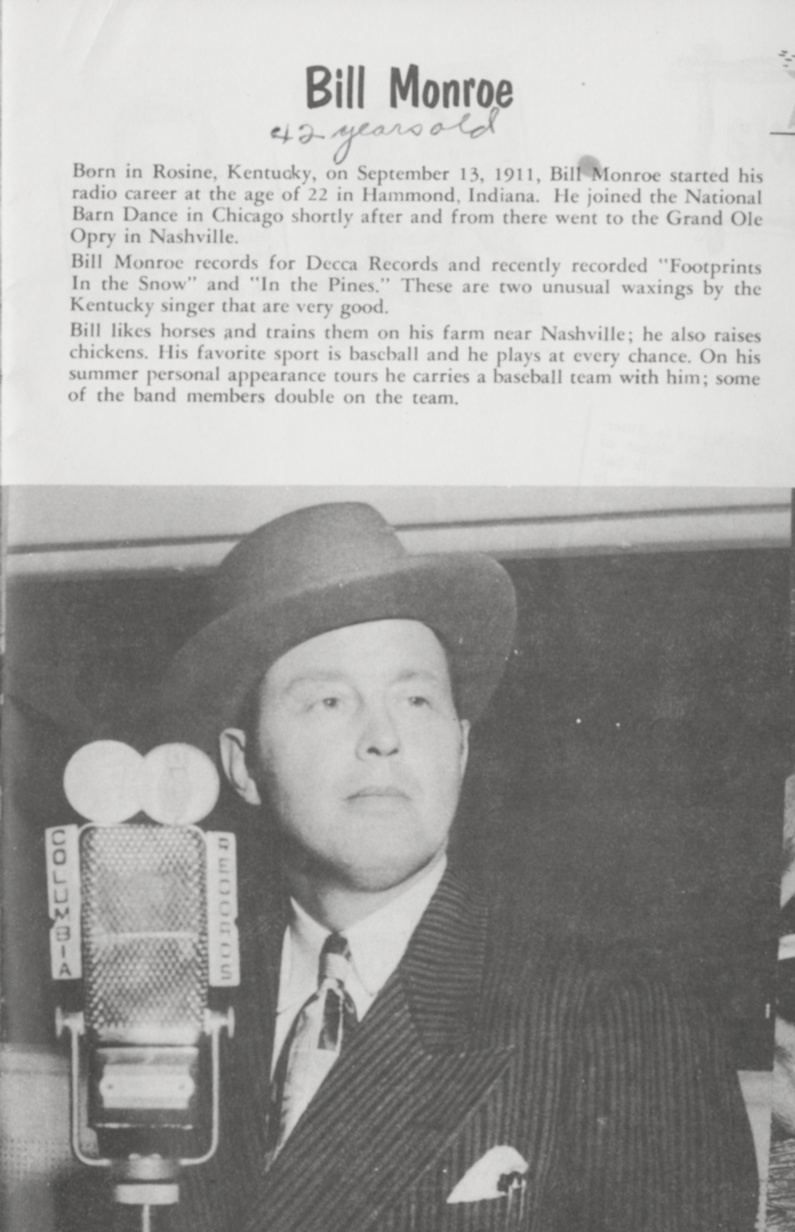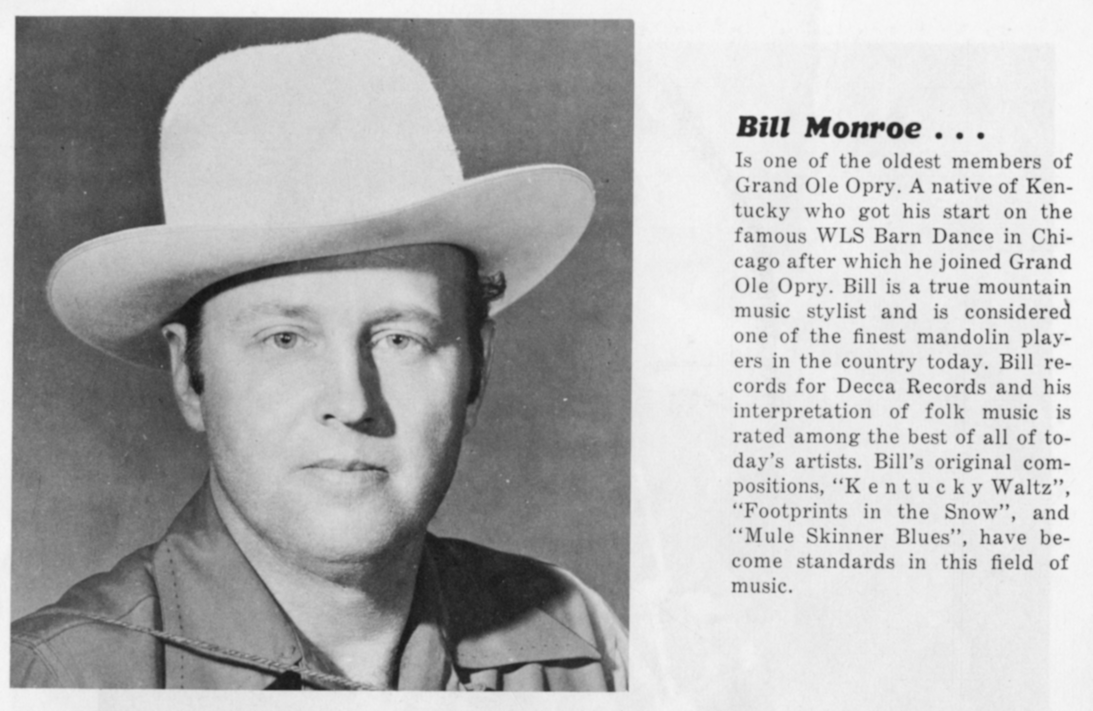 ![]() Bluegrass musician Bill Monroe in 1952 Image by bunky's pickle, via Wikimedia Commons. Licensed CC BY-SA 2.0 |