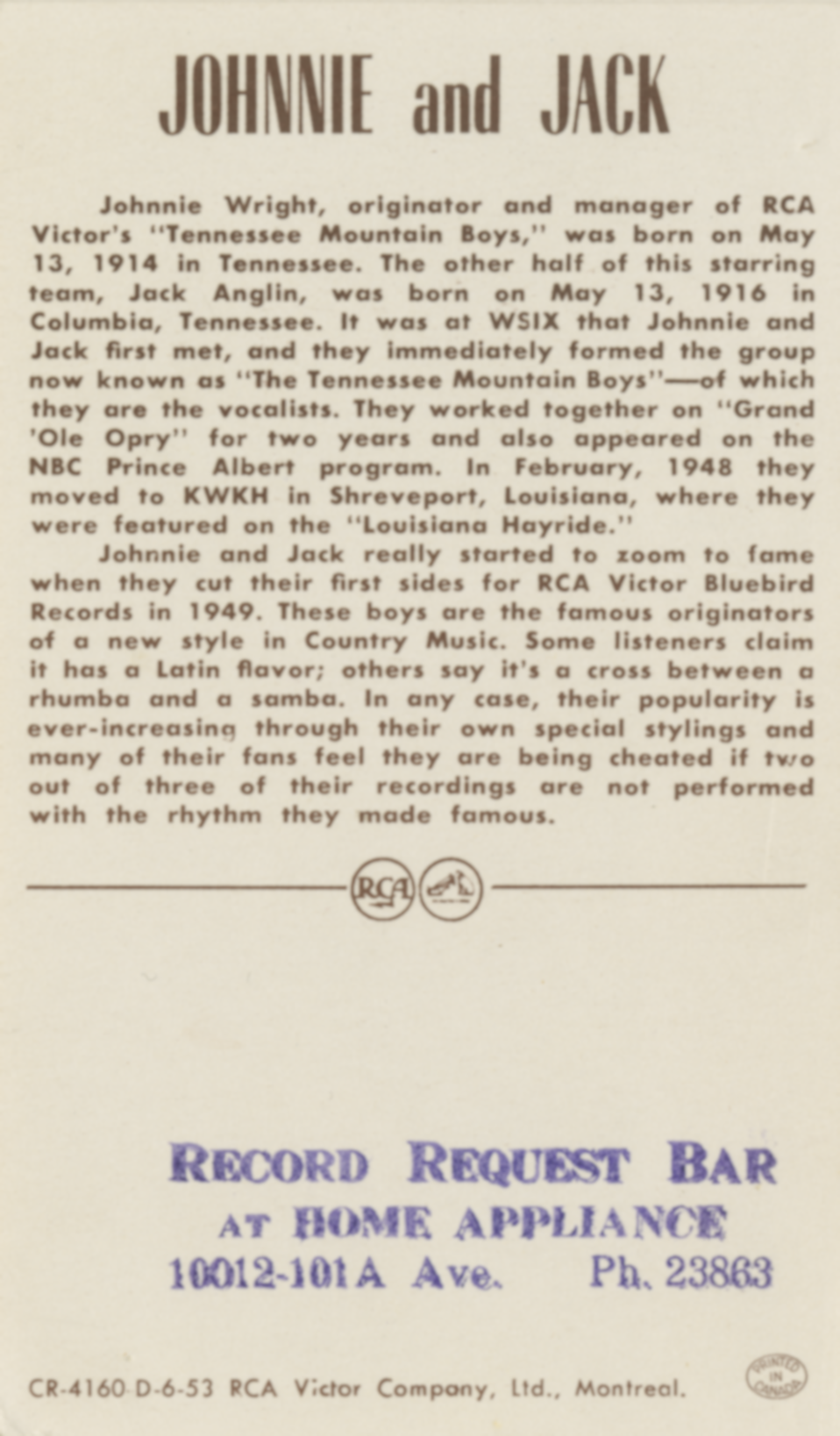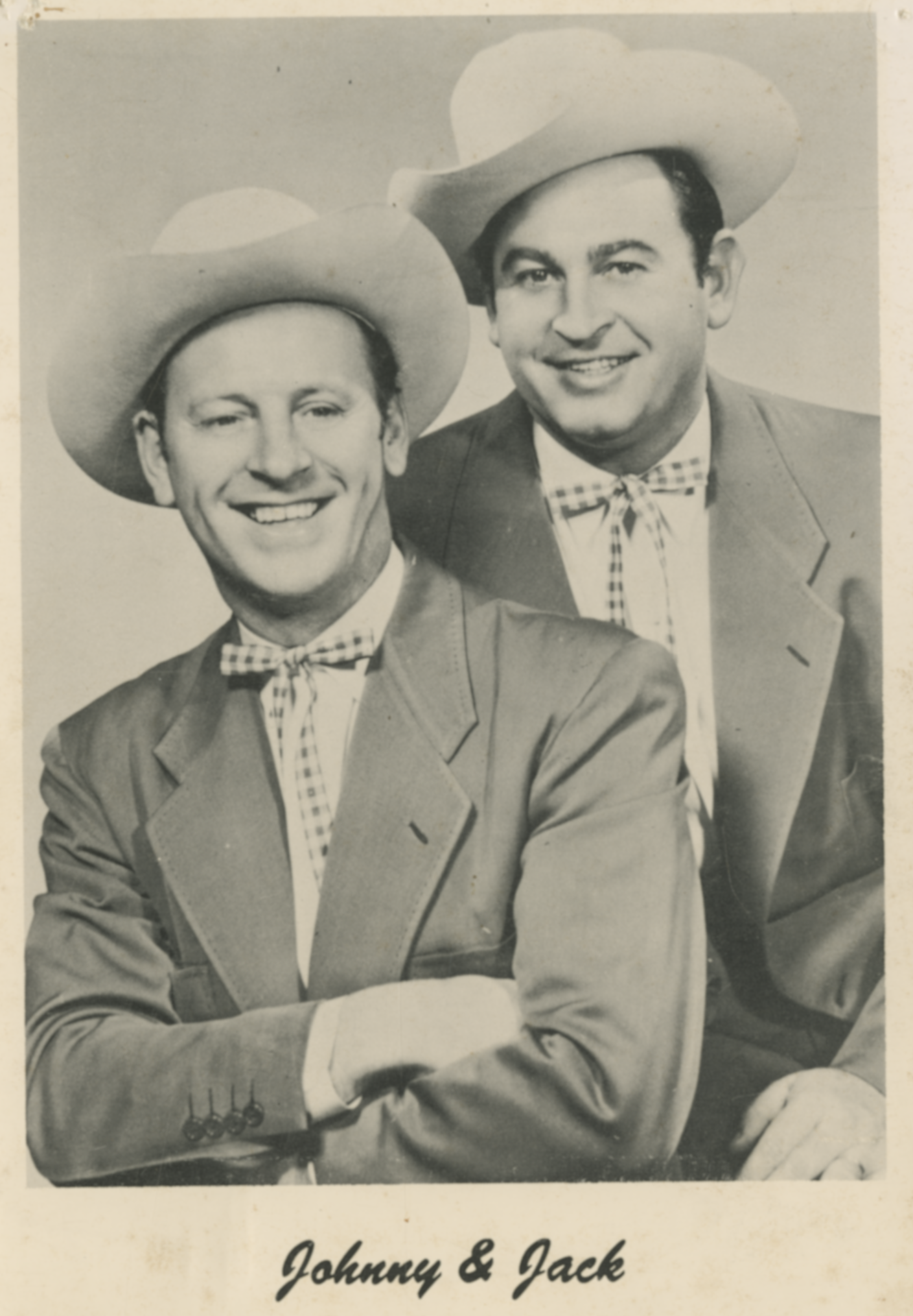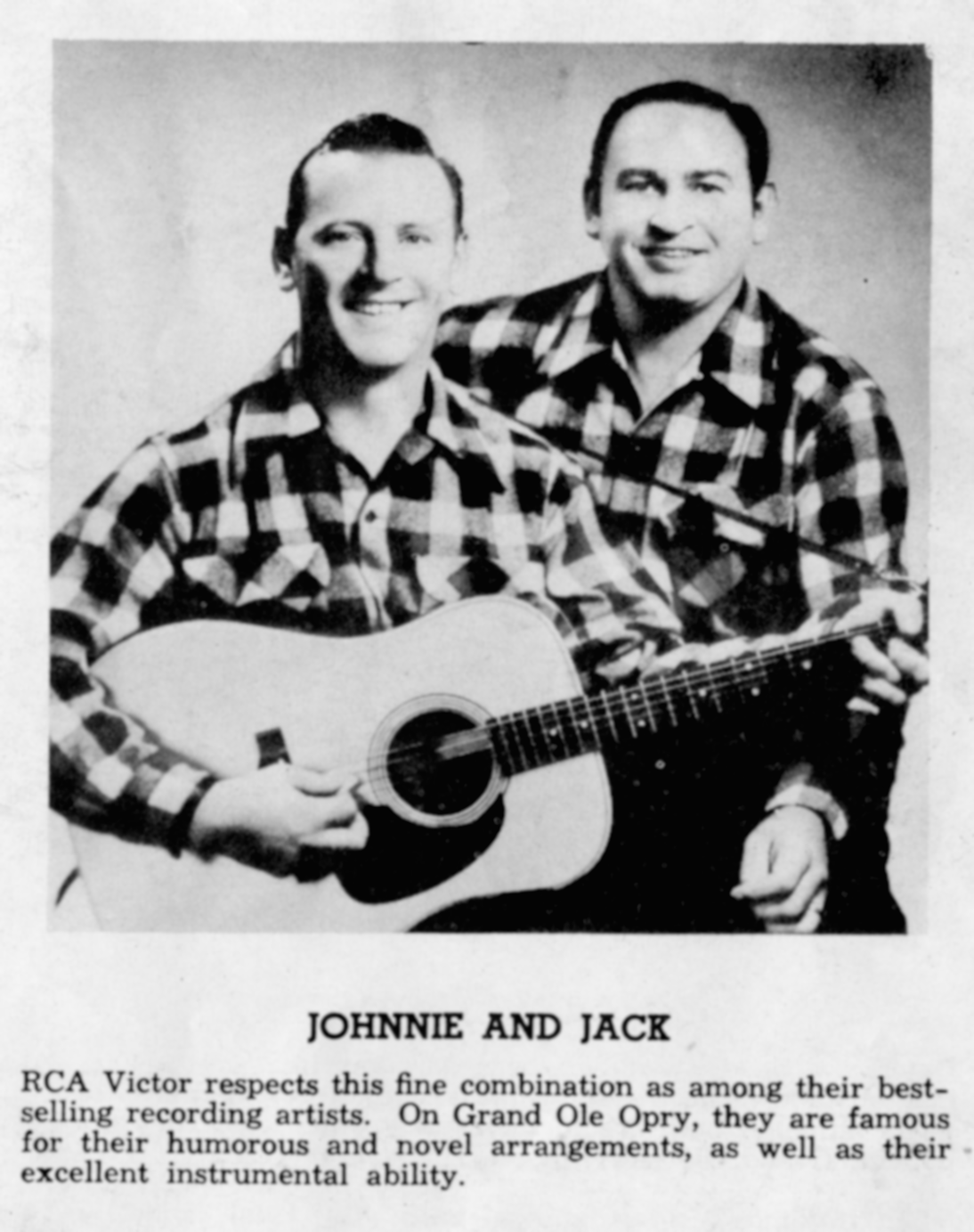 Johnnie & JackJohnnie & Jack Johnnie & Jack Musical group Johnnie & Jack were an American country music duo, composed of Johnnie Wright (1914–2011) and Jack Anglin (1916–1963).[1] The duo became members of the Grand Ole Opry in the 1940s.[2] Between 1951 and 1962, the duo released several singles on the RCA Victor Records label, including their version of "Goodnite, Sweetheart, Goodnite" which peaked at No. 4 on the Best Seller charts,[3] and the No. 1 "(Oh Baby Mine) I Get So Lonely".[1] Quick facts Background information, Origin ... Johnnie & Jack Johnnie (left) and Jack (right) with Kitty Wells (center) Background information Origin Tennessee, United States Genres Country Years active 1938–1963 Labels RCA Victor Past members Jack Anglin Johnnie Wright Close… (Source: Wikipedia)