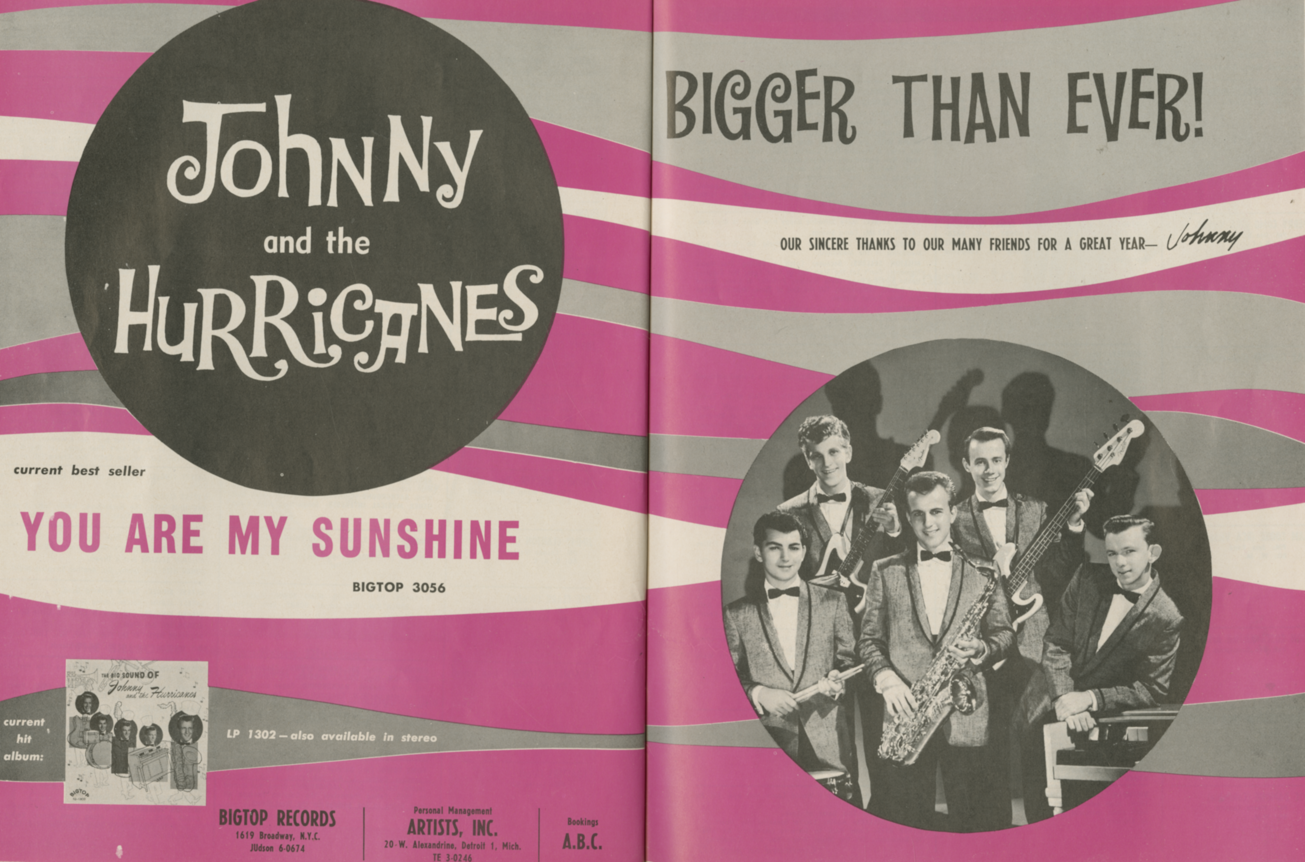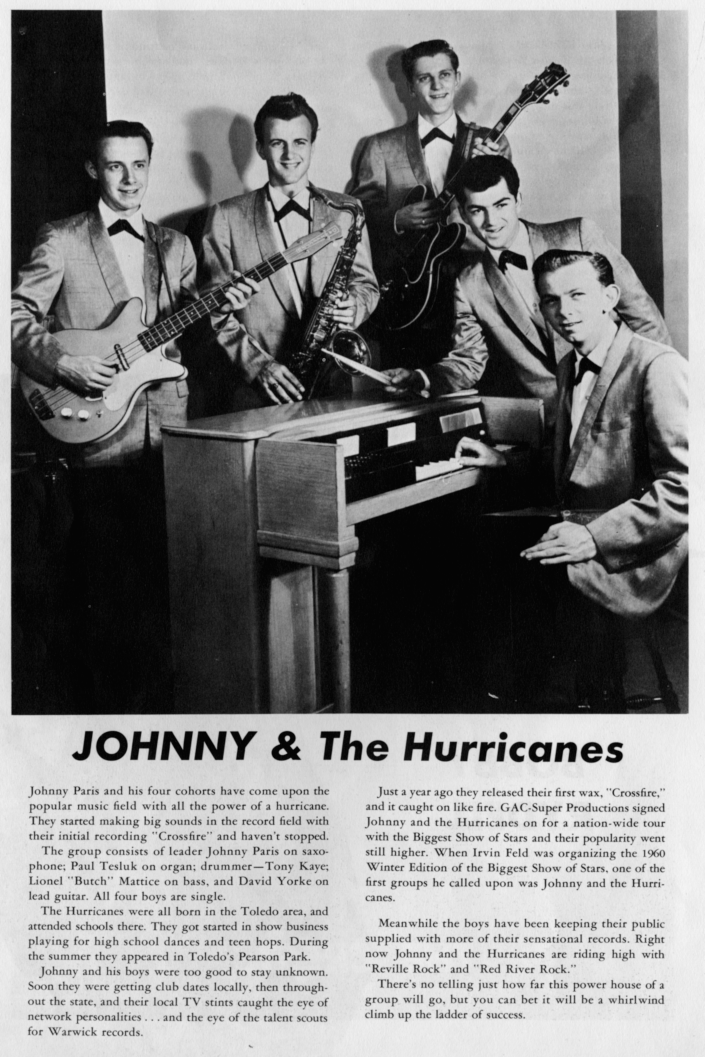 Johnny & The HurricanesJohnny and the Hurricanes Johnny and the Hurricanes American rock band Johnny and the Hurricanes was an American instrumental rock band from Toledo, Ohio, United States.[1] They specialized in adapting popular traditional melodies into the rock idiom, using organ and saxophone as their featured instruments on their hits, and guitar lead on the B sides. Between 1958 and 1963, the group had a number of hits in both the US and the UK, and developed a following in Europe. In 1962, they played at the Star-Club in Hamburg, where the Beatles, then a little-known band, were an opening act. The band continued as a live act through 2005; leader Johnny Paris died in 2006. This article needs additional citations for… (Source: Wikipedia)