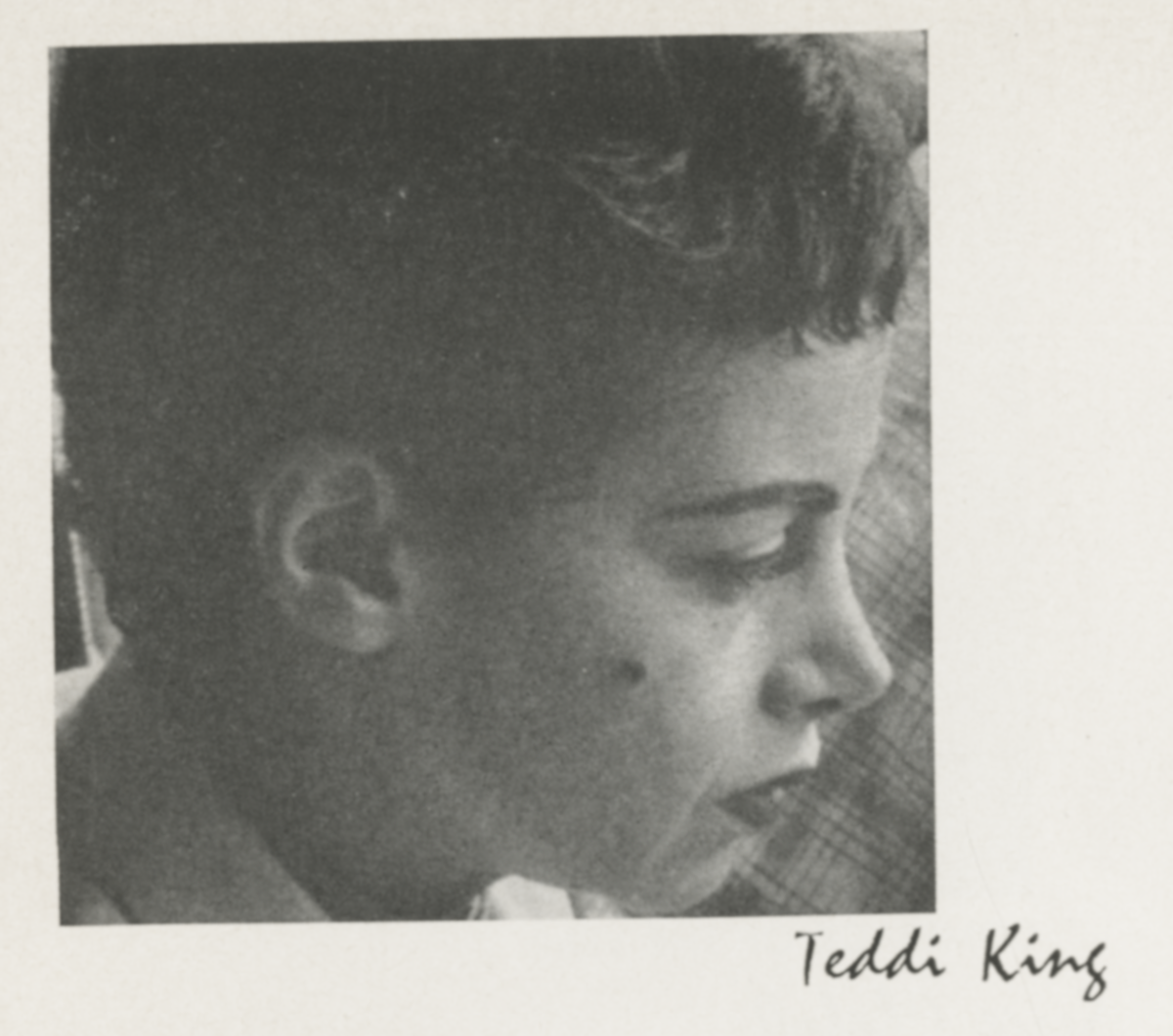 ![]() Teddi King (1929-1977) portrait Image by AnonymousUnknown author, via Wikimedia Commons. Licensed Public domain |