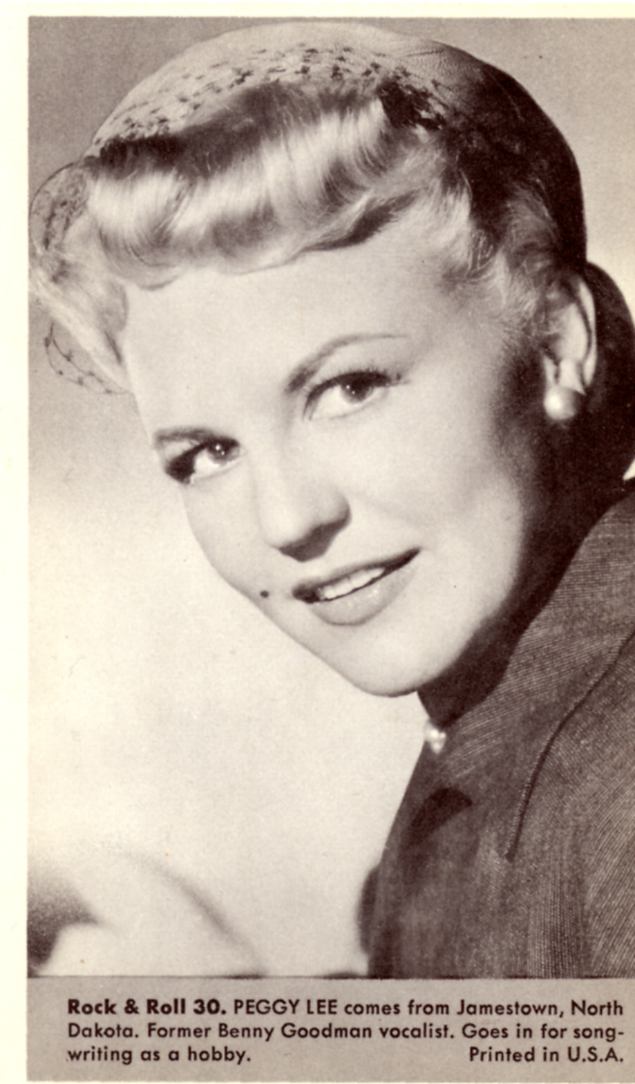 Publicity photo of singer Peggy Lee. Image by General Artists Corporation (management), via Wikimedia Commons. Licensed Public domain |