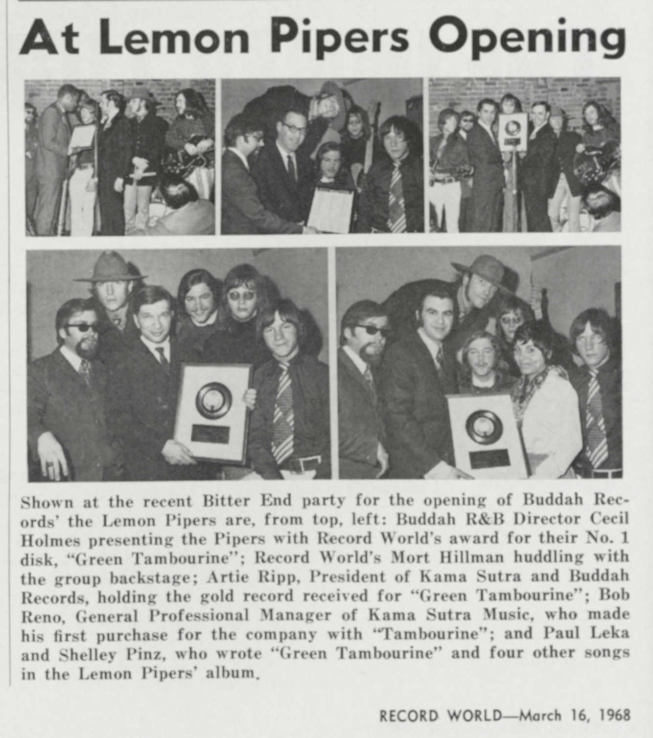 The Lemon PipersThe Lemon Pipers The Lemon Pipers American rock band The Lemon Pipers were a short-lived 1960s American rock band from Oxford, Ohio,[3] known chiefly for their song "Green Tambourine", which reached No. 1 in the United States in 1968. The song has been credited as being the first bubblegum pop chart-topper.[3] Quick facts Background information, Origin ... The Lemon Pipers The Lemon Pipers in 1968. Top, from left: Ivan Browne, Bill Bartlett, Bill Albaugh. Bottom, from left: Steve Walmsley, Robert G. Nave. Background information Origin Oxford, Ohio, U.S. Genres Bubblegum[1] psychedelic[2] Years active 1966–1969 Labels Buddah Past members Bill Albaugh Bill Bartlett Dale "Ivan" Browne Bob "Reg" Nave Bob "Dude" Dudek Steve Walmsley Close The members of the Lemon Pipers… (Source: Wikipedia)