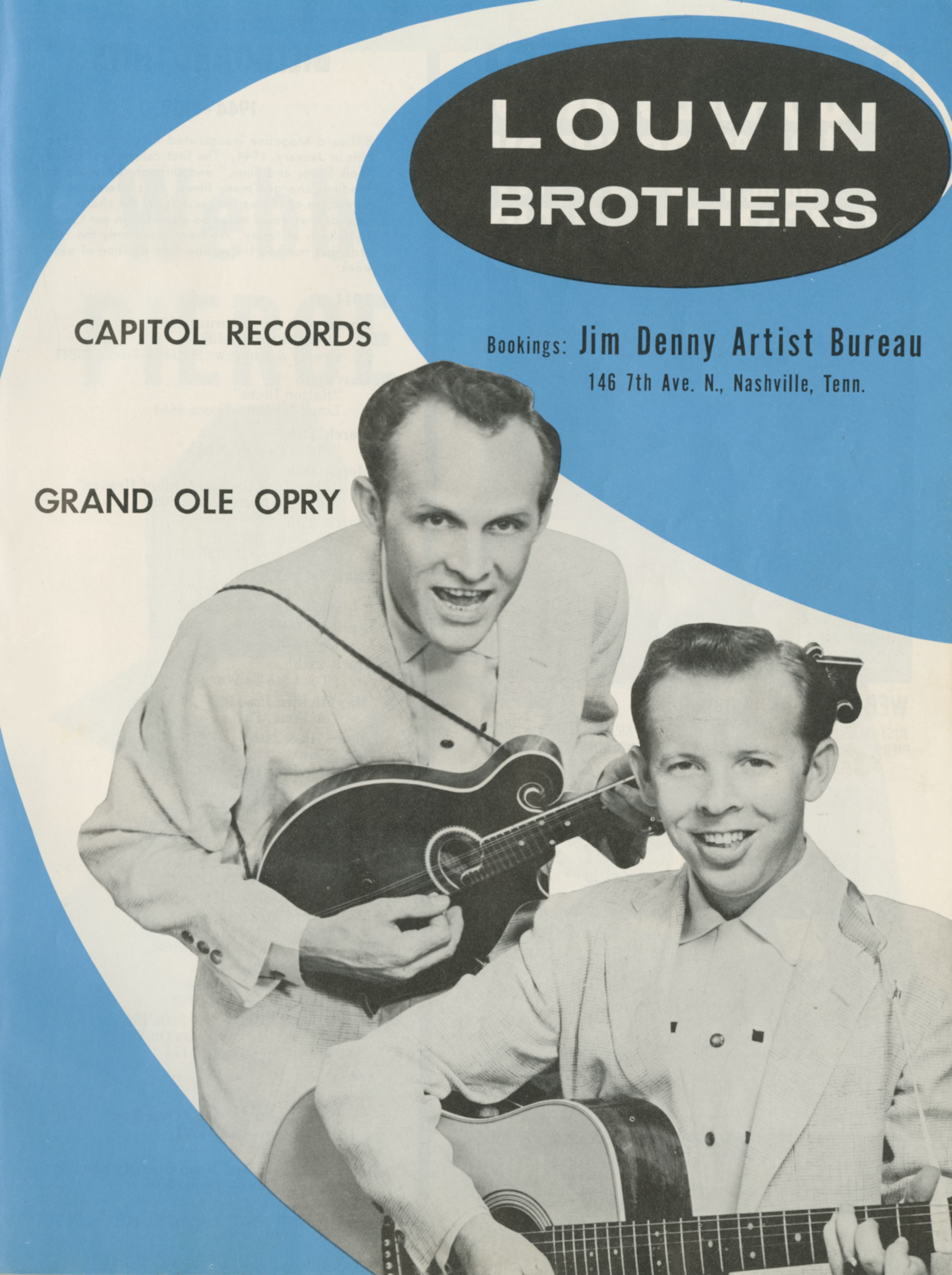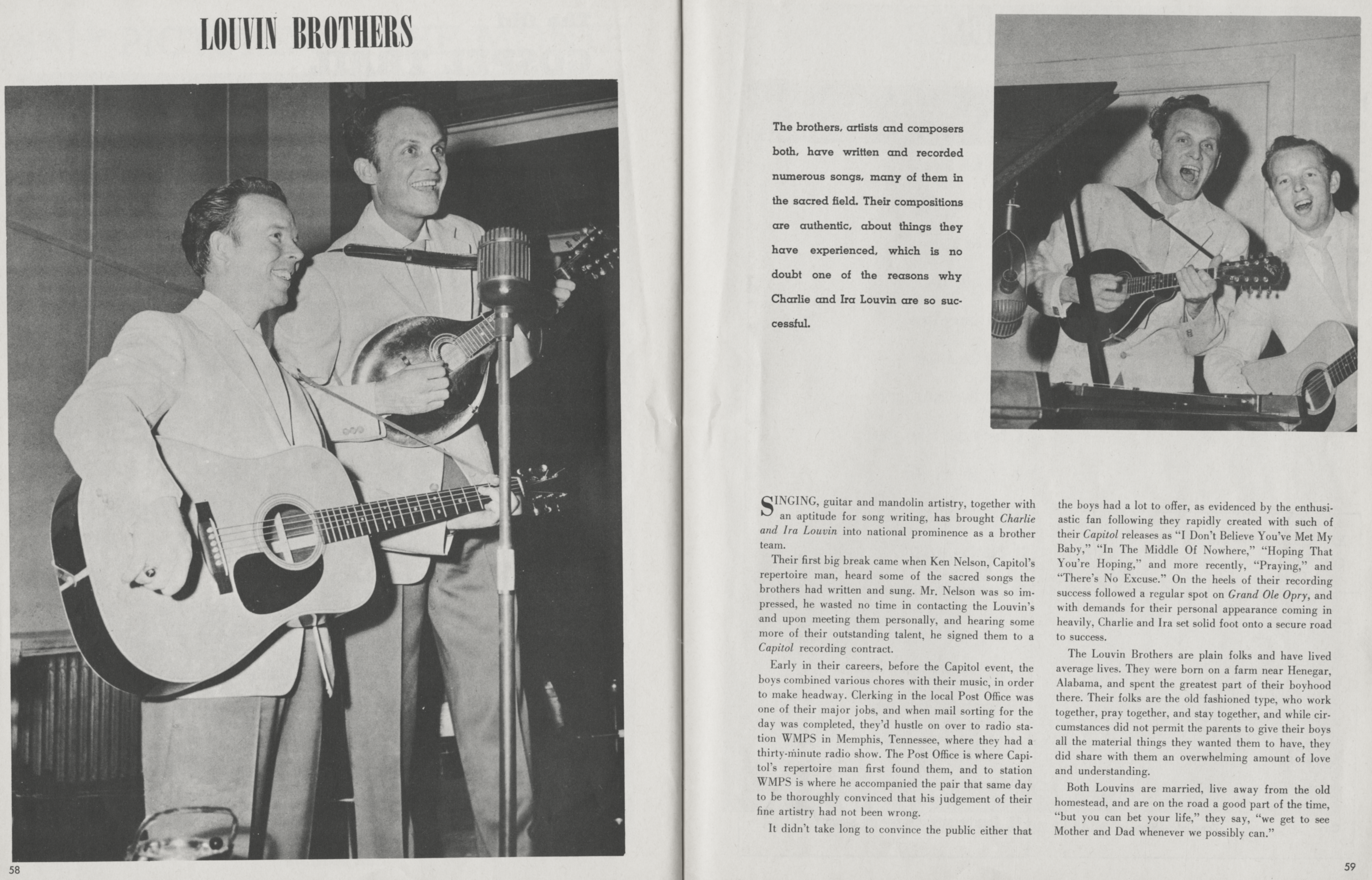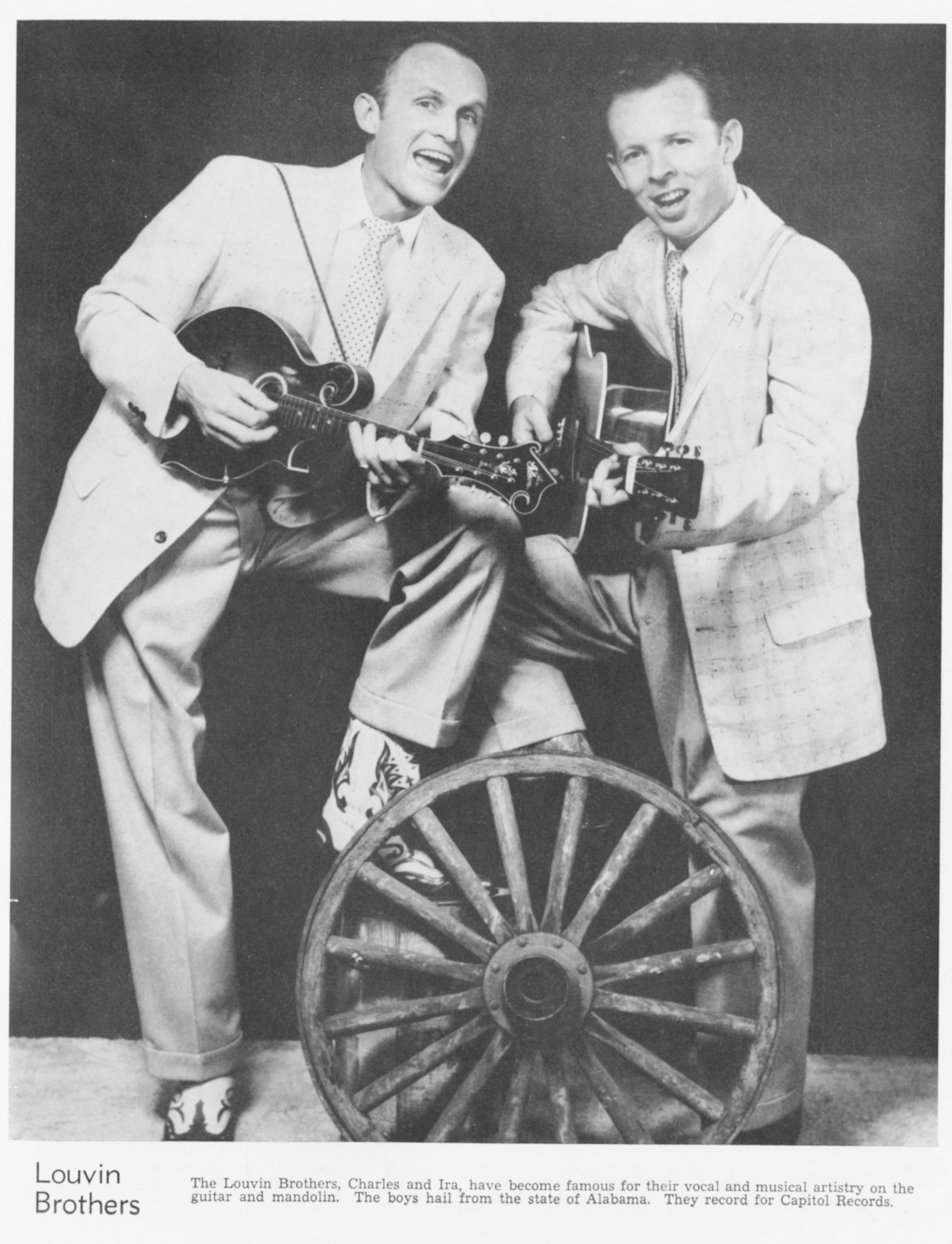 The Louvin BrothersThe Louvin Brothers The Louvin Brothers American country music duo The Louvin Brothers were an American musical duo composed of brothers Ira and Charlie Louvin (né Loudermilk). The brothers are cousins to John D. Loudermilk, a Nashville Songwriters Hall of Fame member. Quick facts Louvin Brothers, Background information ... Louvin Brothers Charlie (left) and Ira Louvin Background information Origin Henagar, Alabama, US Genres Country bluegrass gospel Years active 1940–1963 Labels Capitol Members Ira Louvin Charlie Louvin Close The brothers wrote and performed country, bluegrass, and gospel music. Ira played mandolin and generally sang lead vocal in the tenor range, while Charlie played rhythm guitar and offered supporting vocals in a lower pitch. They helped popularize the vocal technique of close… (Source: Wikipedia)
