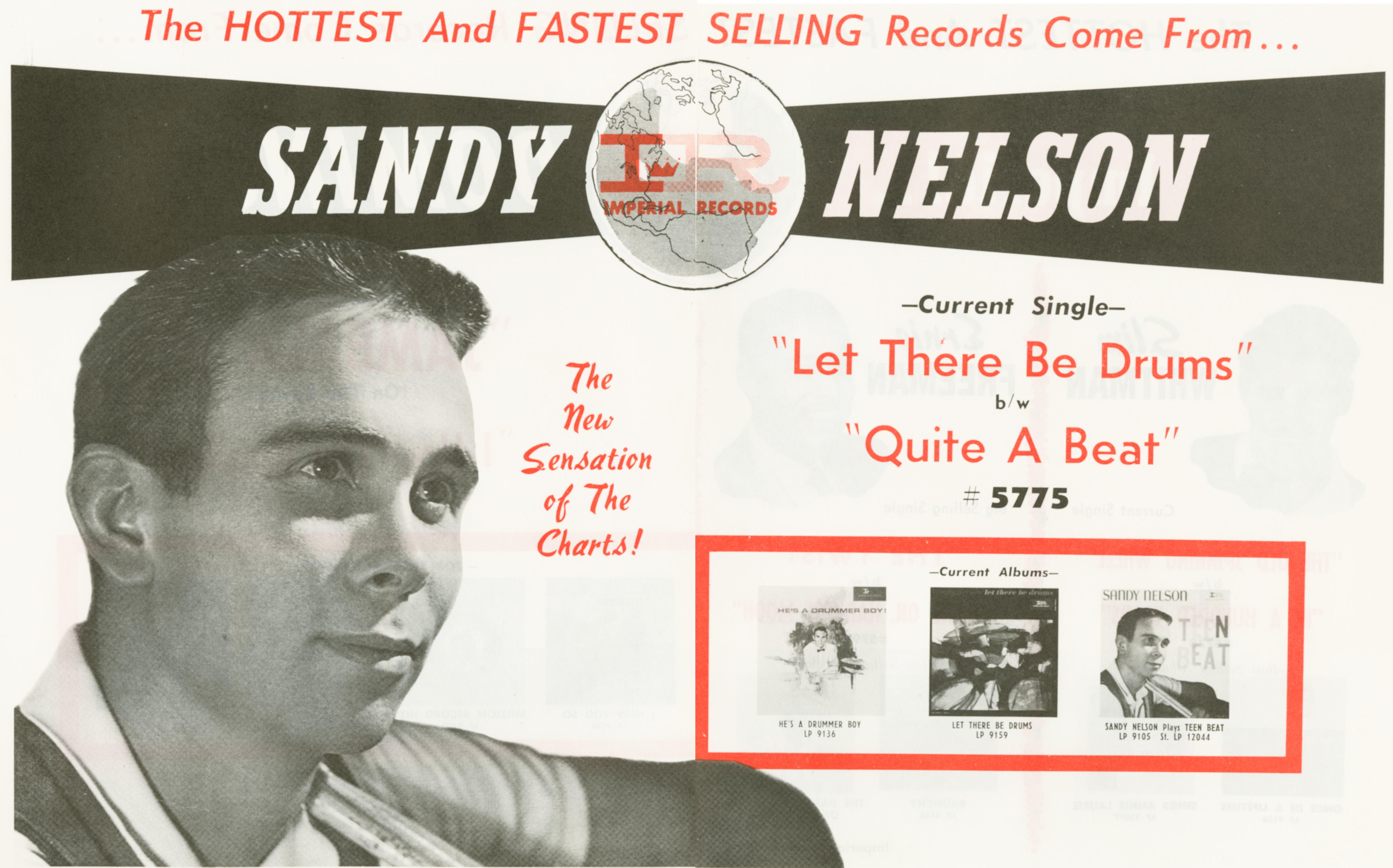 Sandy NelsonSandy Nelson Sandy Nelson American drummer (1938–2022) For the Australian rules footballer, see Sandy Nelson (footballer). Sander Lloyd Nelson (December 1, 1938 – February 14, 2022) was an American drummer.[1] Nelson, one of the best-known rock and modern jazz drummers of the late 1950s and early 1960s, had several solo instrumental Top 40 hits and released over 30 albums. He was a session drummer on many other well-known hits.[2] He lived in Boulder City, Nevada, where he continued to experiment with music on keyboards and piano. Quick facts Background information, Born ... Sandy Nelson Background information Born Sander Lloyd Nelson (1938-12-01)December 1, 1938 Santa Monica, California, U.S. Died February 14, 2022(2022-02-14) (aged 83) Las Vegas, Nevada, U.S. Genres Instrumental rock… (Source: Wikipedia)
