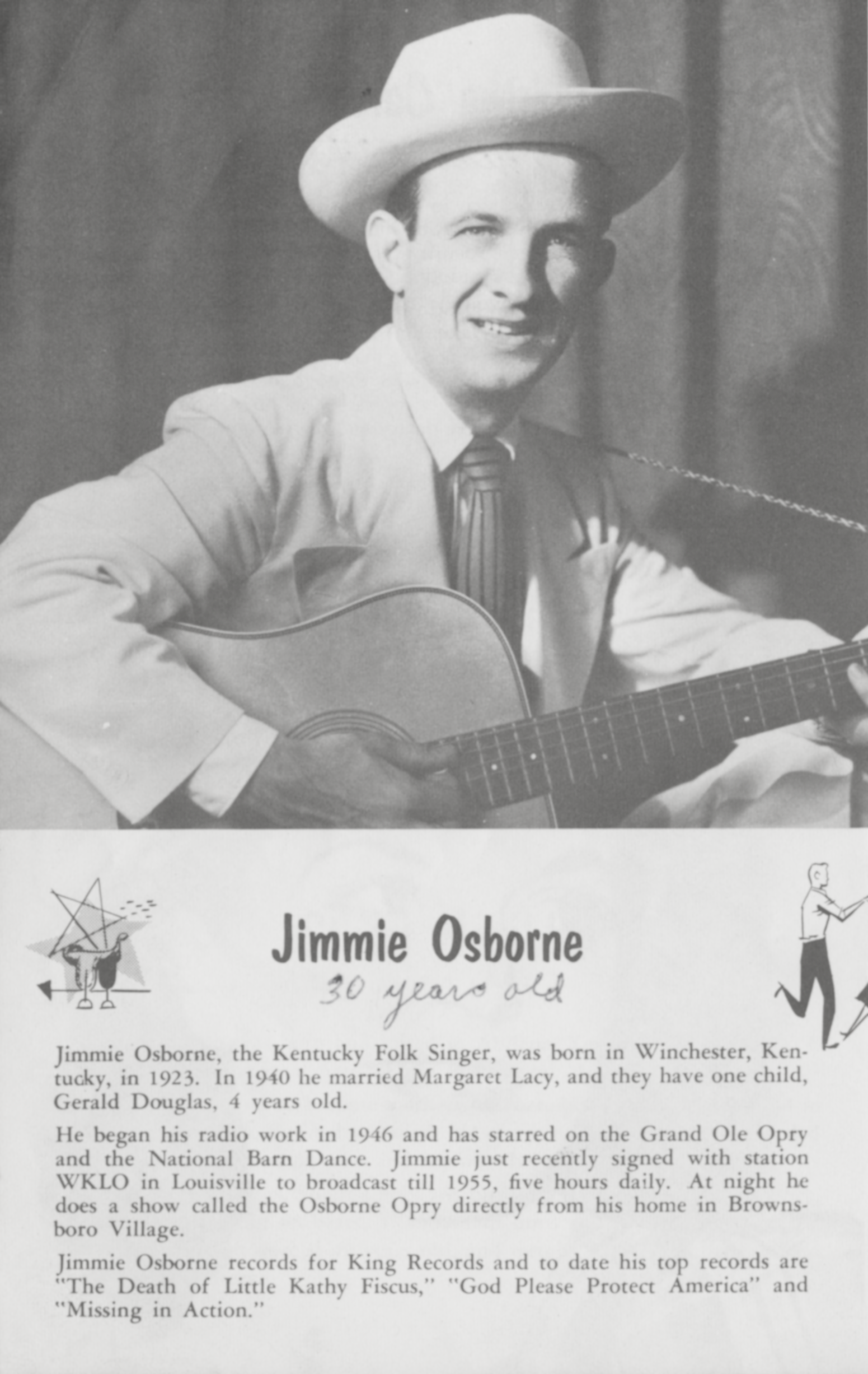 Jimmie OsborneKathy Fiscus Kathy Fiscus American girl who died in a well (1945–1949) Kathryn Anne Fiscus (August 21, 1945 – April 8, 1949) was a three-year-old girl who died after falling into a well in San Marino, California. The attempted rescue, broadcast live on KTLA, was a landmark event in American television history.[1][2] In April 1949, reporter Stan Chambers covered the Kathy Fiscus tragedy for KTLA. Rescue attempt On the afternoon[3] of April 8, 1949, Kathy was playing with her nine-year-old sister, Barbara, and cousin, Gus, in a field in San Marino when she fell down the 14-inch-wide (36 cm) shaft of an abandoned water well. Her father, David, worked for the California Water and Telephone Co., which had drilled the… (Source: Wikipedia)