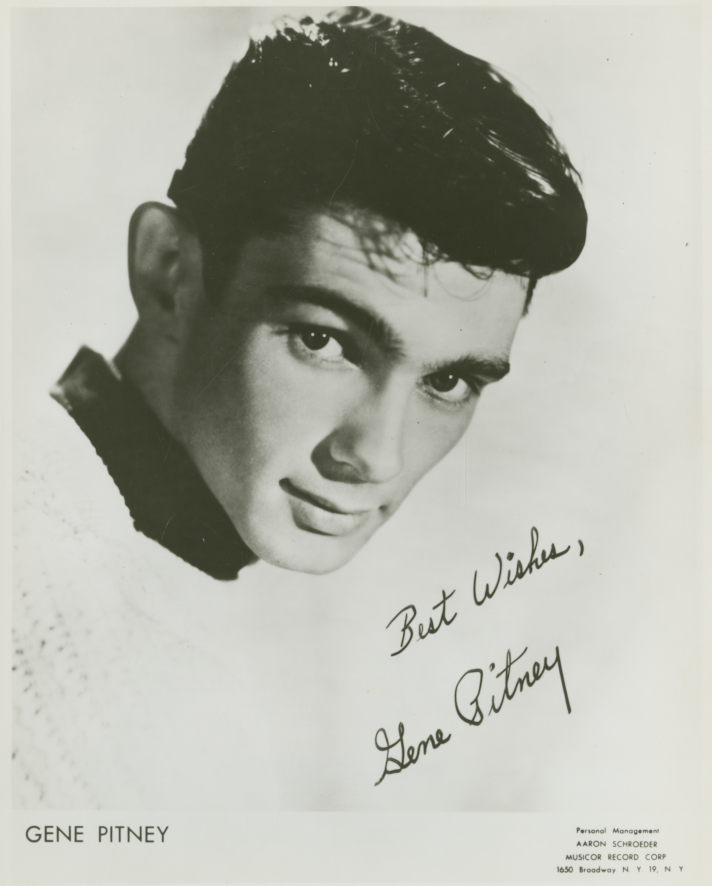 Publicity photo of singer Gene Pitney. Image by William Morris Agency (management), via Wikimedia Commons. Licensed Public domain |