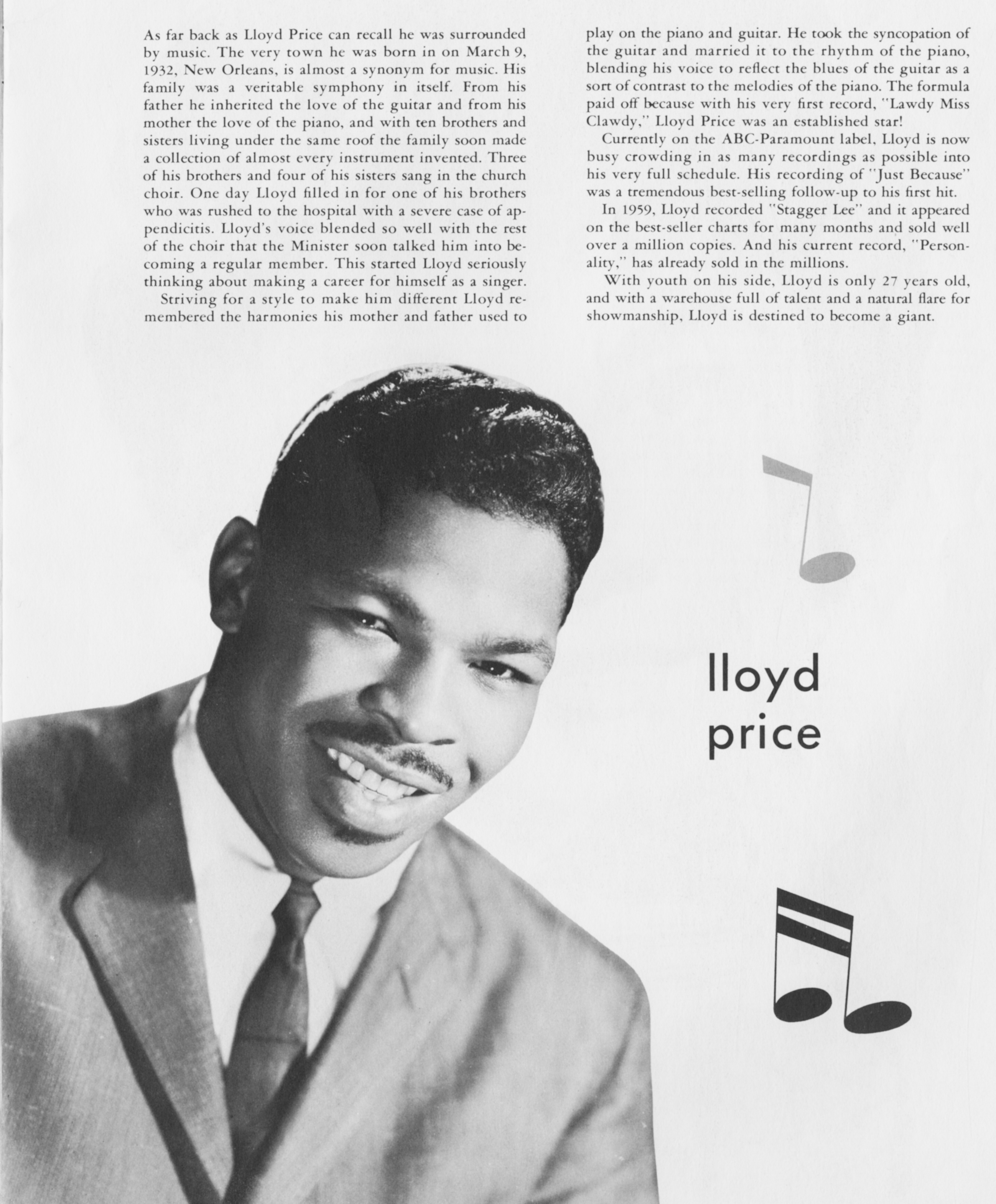 ![]() Publicity photo of Lloyd Price Image by Unknown authorUnknown author, via Wikimedia Commons. Licensed PDM-owner |