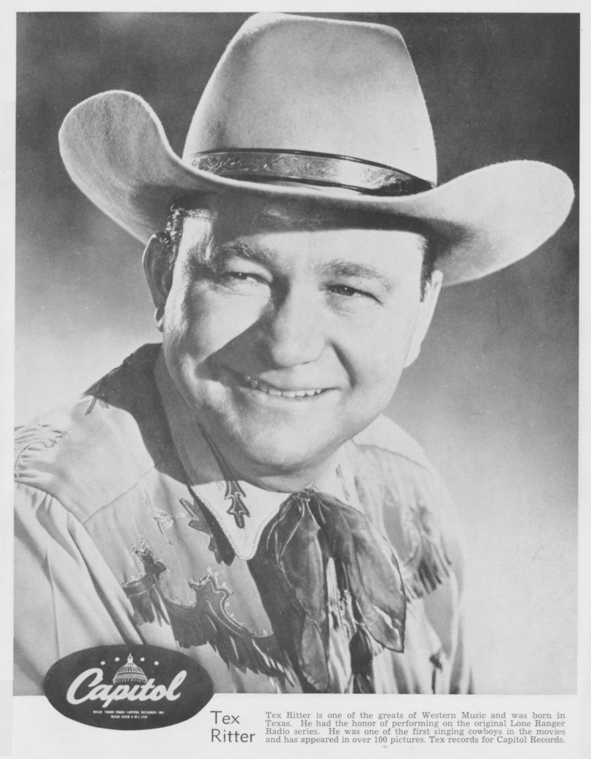 Publicity photo of Tex Ritter, who is the father of actor John Ritter. Image by Capitol Records, via Wikimedia Commons. Licensed Public domain |