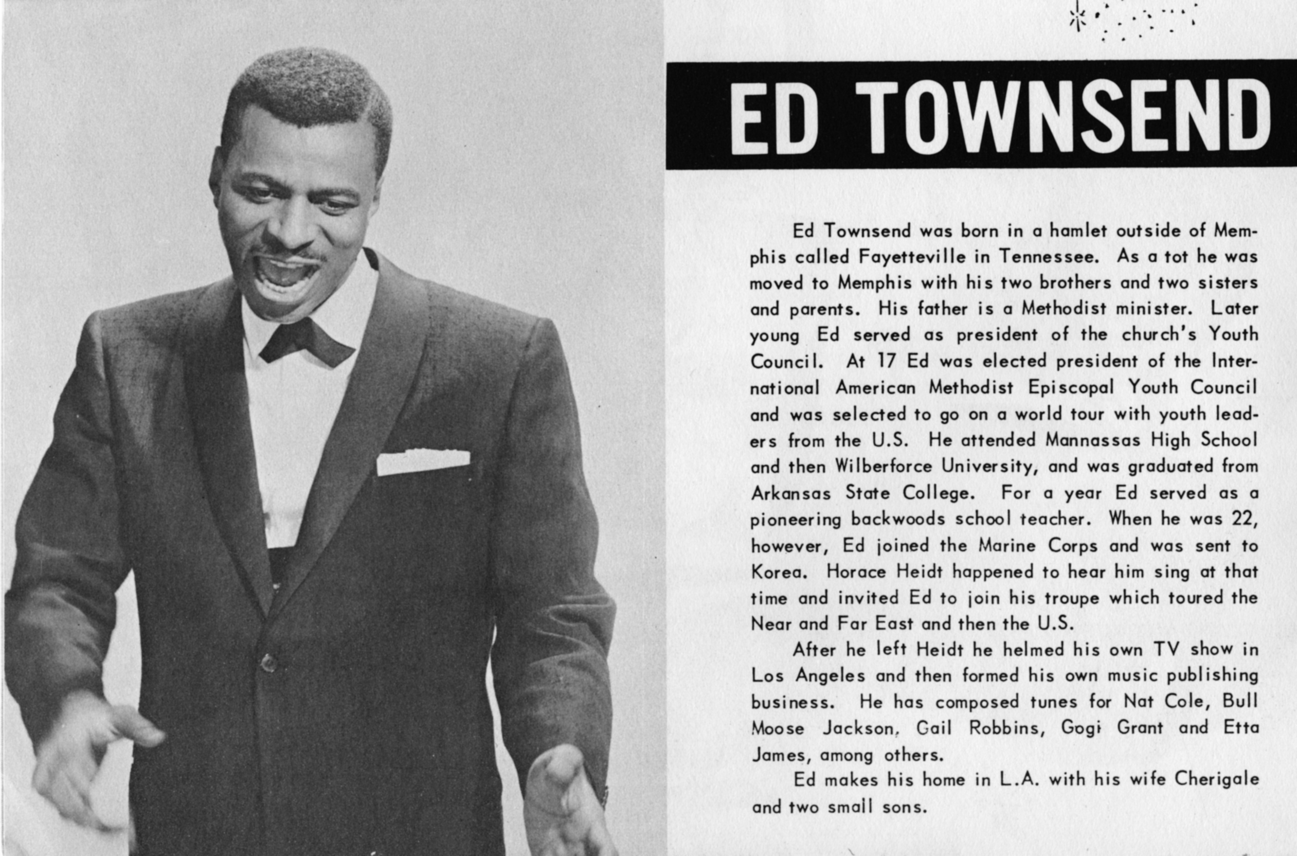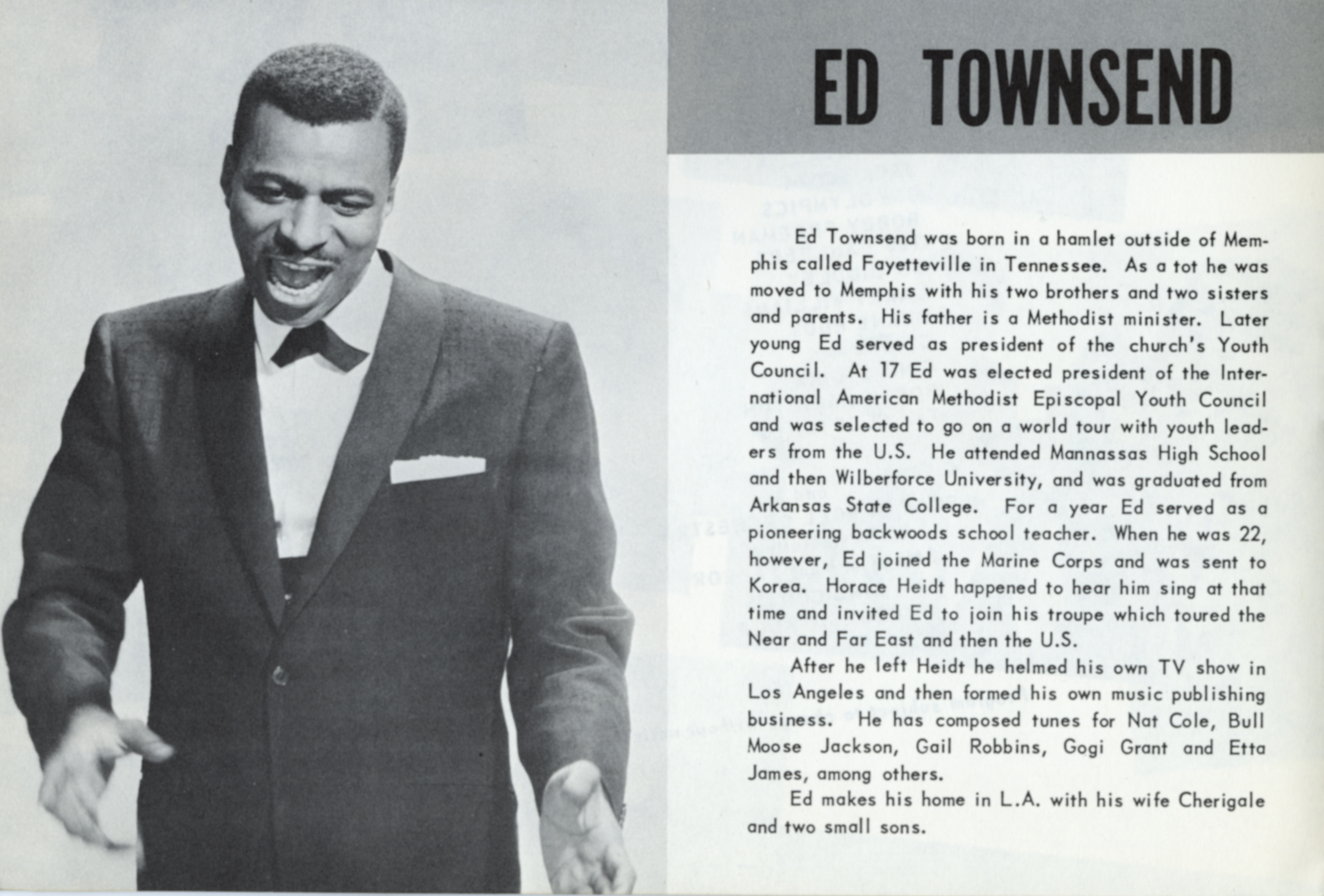 Ed TownsendEd Townsend Ed Townsend American singer, songwriter, record producer For the swimmer, see Ed Townsend (swimmer). Edward Benjamin Townsend (April 16, 1929[1] – August 13, 2003) was an American singer, songwriter, and record producer. He performed and composed "For Your Love", a rhythm and blues doo-wop classic, and co-wrote "Let's Get It On" with Marvin Gaye.[2] Quick facts Born, Died ... Ed Townsend Born Edward Benjamin Townsend (1929-04-16)April 16, 1929 Fayetteville, Tennessee, U.S. Died August 13, 2003(2003-08-13) (aged 74) San Bernardino, California, U.S. Genres Rhythm and blues, doo-wop, soul Occupations Singer, songwriter, record producer Years active 1950–2001 Labels Aladdin, Dot, Capitol, Carlton, Warner Bros., Challenge, Liberty, MGM, Curtom, Chocolate City, KT Records, Maxx Records, Tru-Glo-Town Records, EGA Records Close Quick… (Source: Wikipedia)