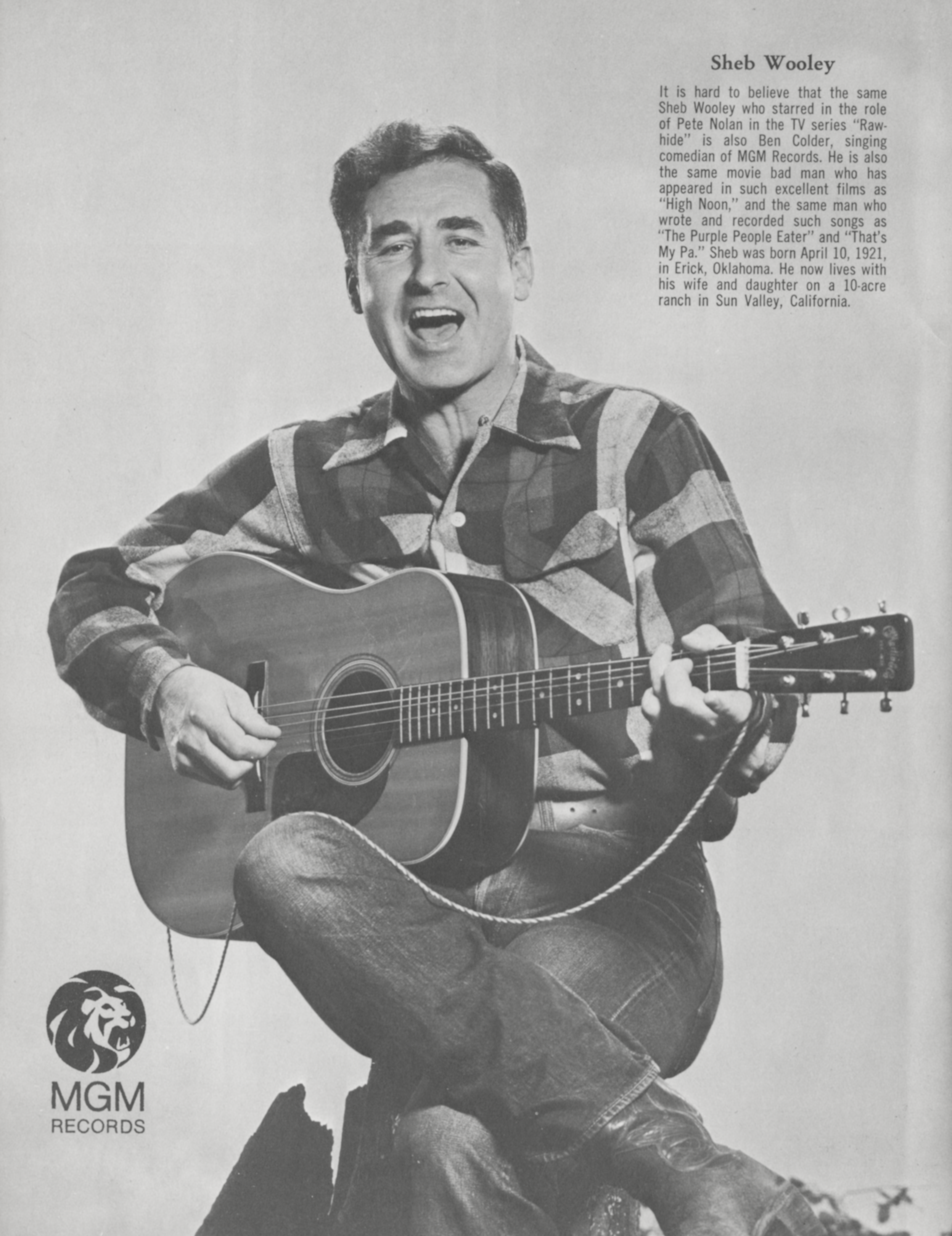 Publicity photo of Sheb Wooley. Image by OMAC Artist Corporation, Bakersfield, CA., via Wikimedia Commons. Licensed Public domain |