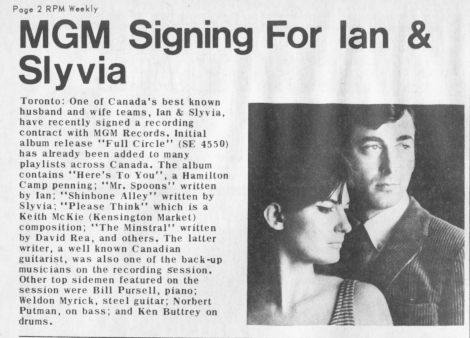 Ian & Sylvia (Great Speckled Bird)Ian & Sylvia Ian & Sylvia Canadian musical duo Ian & Sylvia were a Canadian folk and country music duo that consisted of Ian and Sylvia Tyson. They began performing together in 1959 (full-time in 1961),[1] married in 1964, and divorced and stopped performing together in 1975.[2][3][4] Quick facts Background information, Origin ... Ian & Sylvia Background information Origin Toronto, Ontario, Canada Genres Folk, country, country rock Years active 1959–1975 Labels Vanguard MGM Columbia Past members Ian Tyson Sylvia Tyson Close History Early lives Ian Tyson, CM, AOE was born in Victoria, British Columbia in 1933. In his teens, he decided upon a career as a rodeo rider. Recovering from injuries sustained from a fall during the mid-1950s, he started… (Source: Wikipedia)