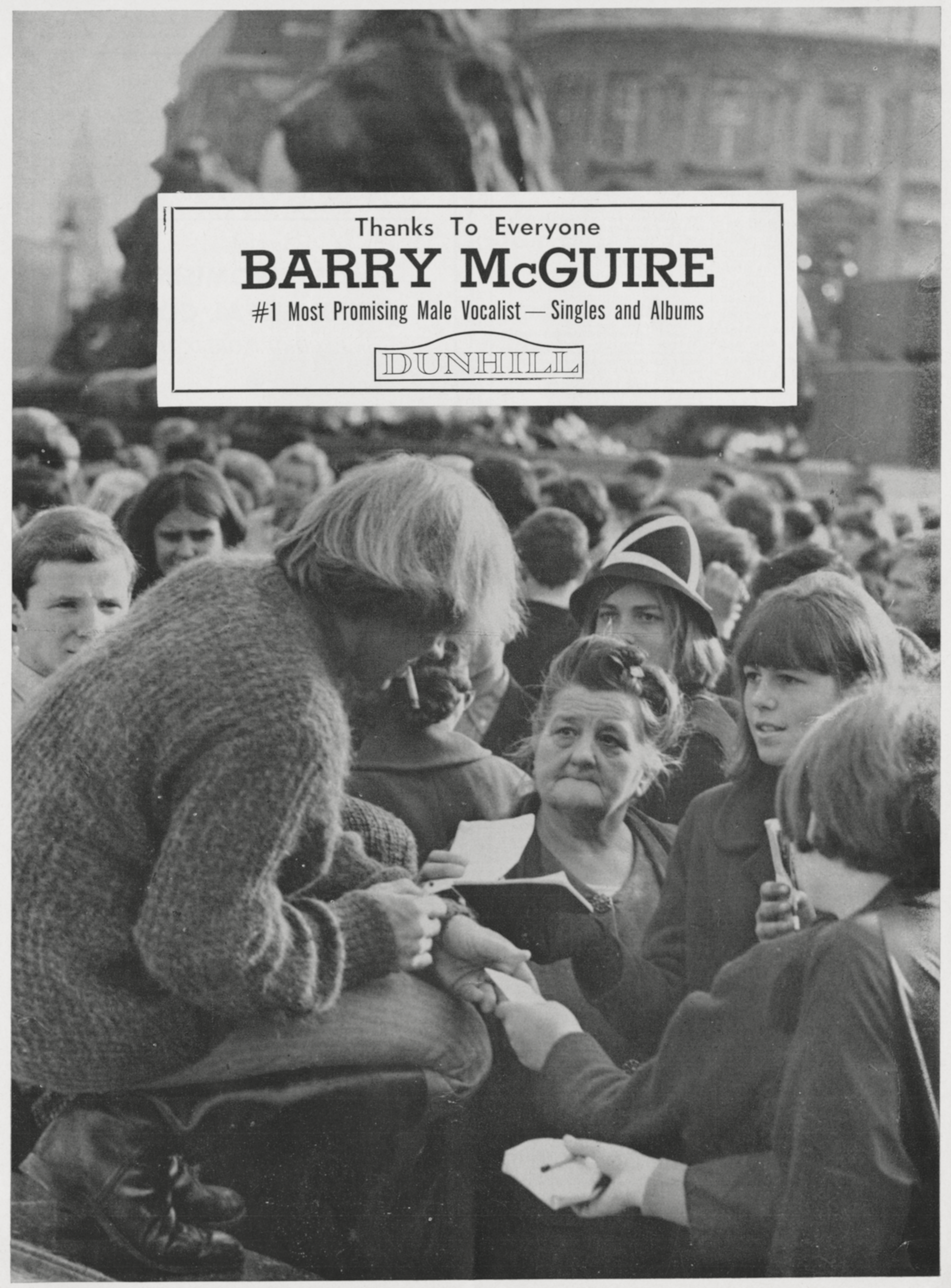![]() Barry McGuire at the 3 day Music & Alternatives festival, New Zealand 1979 Image by The original uploader was Mombas at English Wikipedia., via Wikimedia Commons. Licensed CC BY 2.5 |