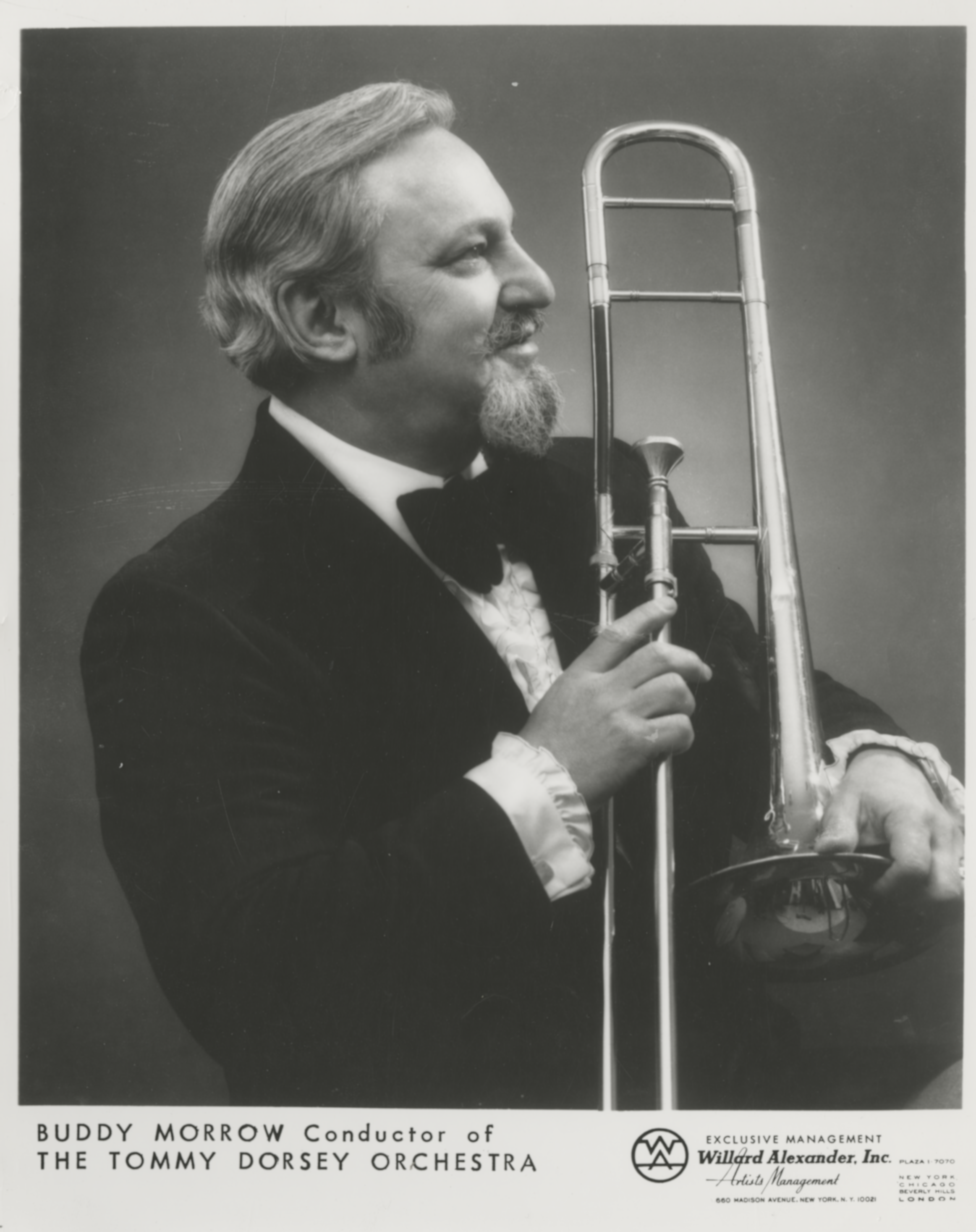![]() Buddy Morrow, New York, N.Y., ca. May 1947 (Photograph by William P. Gottlieb) Image by William P. Gottlieb, via Wikimedia Commons. Licensed Public domain |