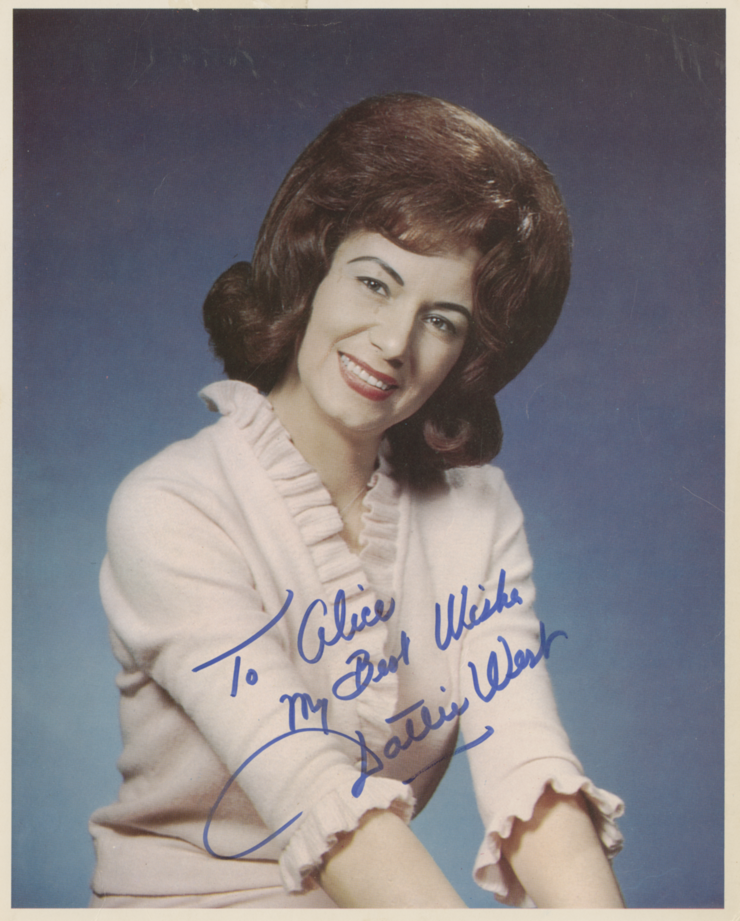 Dottie WestDottie West Dottie West American country music singer and songwriter (1932–1991) Dottie West (born Dorothy Marie Marsh; October 11, 1932 – September 4, 1991[1]) was an American country singer and songwriter. She also had several credits as an actress. A distinguished figure in the country genre, West was among several people who helped to elevate the platform of female country artists. She was also known for mentoring up-and-coming artists and being the first woman to win a country music accolade from the Grammy Awards. Quick facts Born, Died ... Dottie West West in a promotional photograph, 1977 Born (1932-10-11)October 11, 1932 Frog Pond, Tennessee, U.S. Died September 4, 1991(1991-09-04) (aged 58) Nashville, Tennessee, U.S. Alma mater Tennessee Polytechnic Institute Occupations… (Source: Wikipedia)