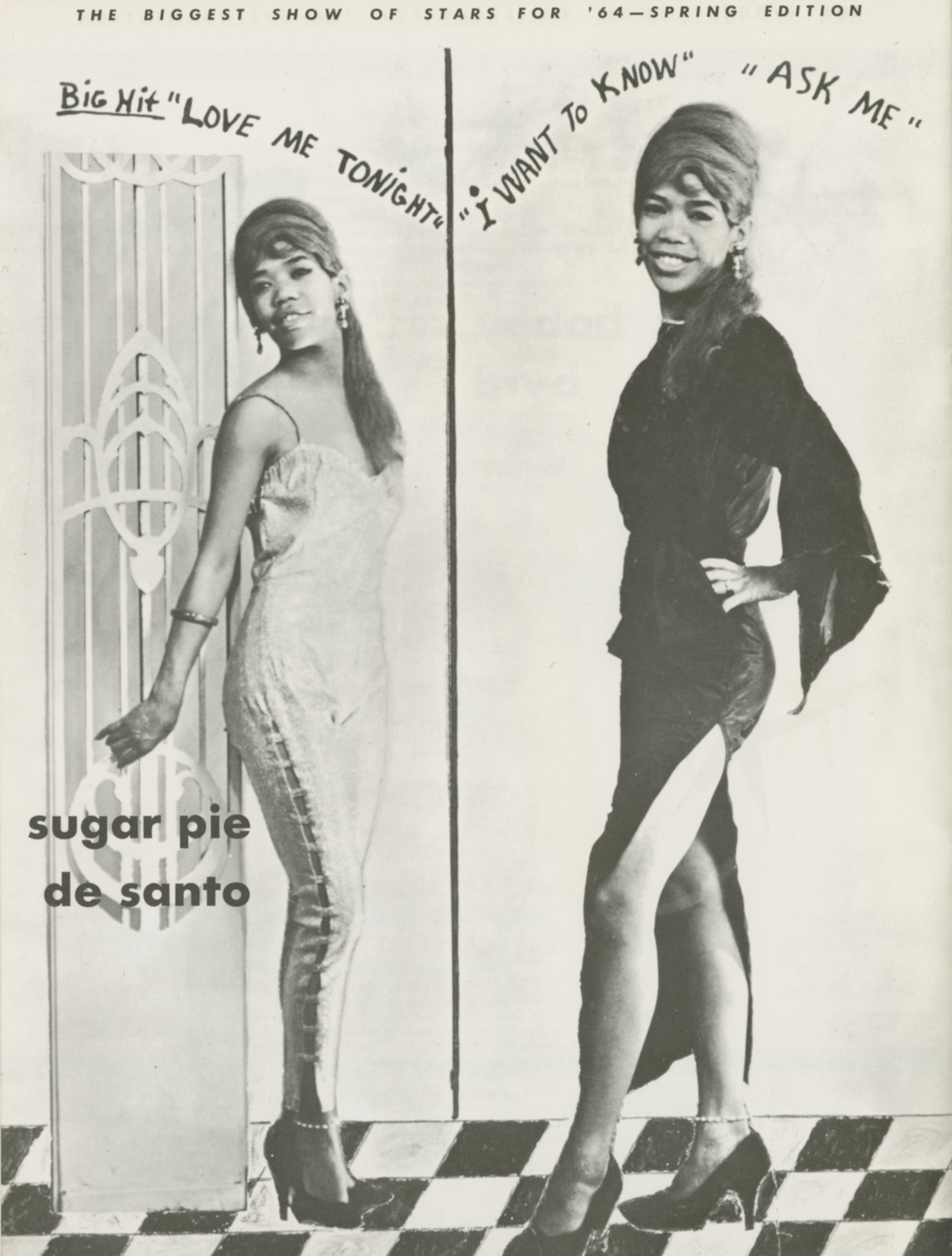 ![]() Sugarpie De Santo singing in 2006. Image by Michael Albov, via Wikimedia Commons. Licensed CC BY 2.0 |