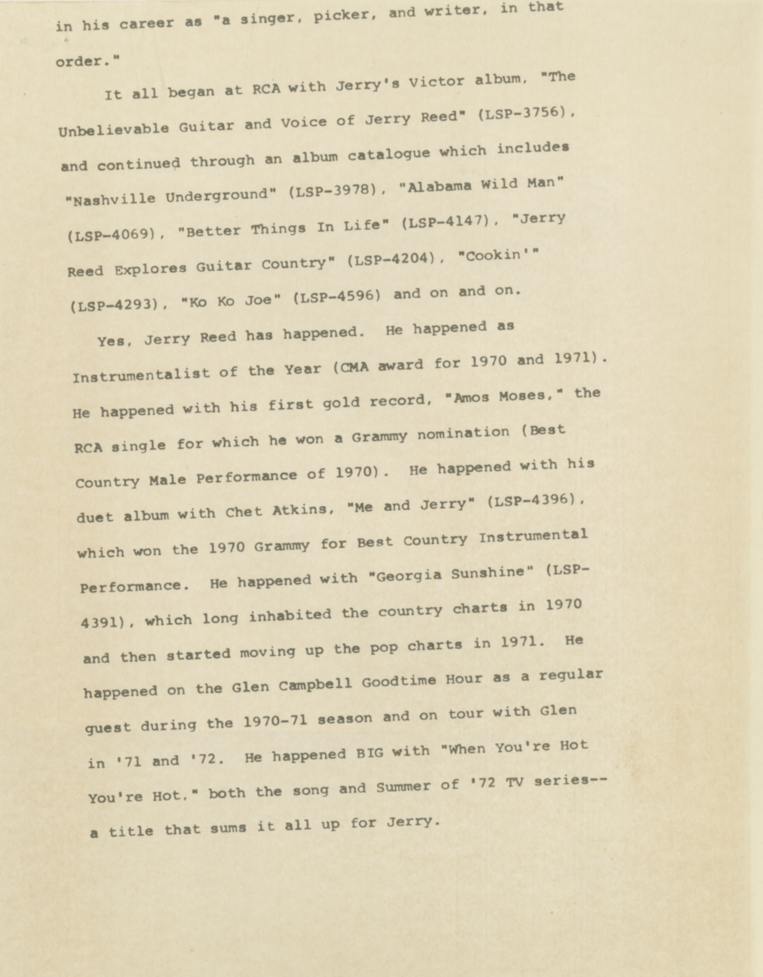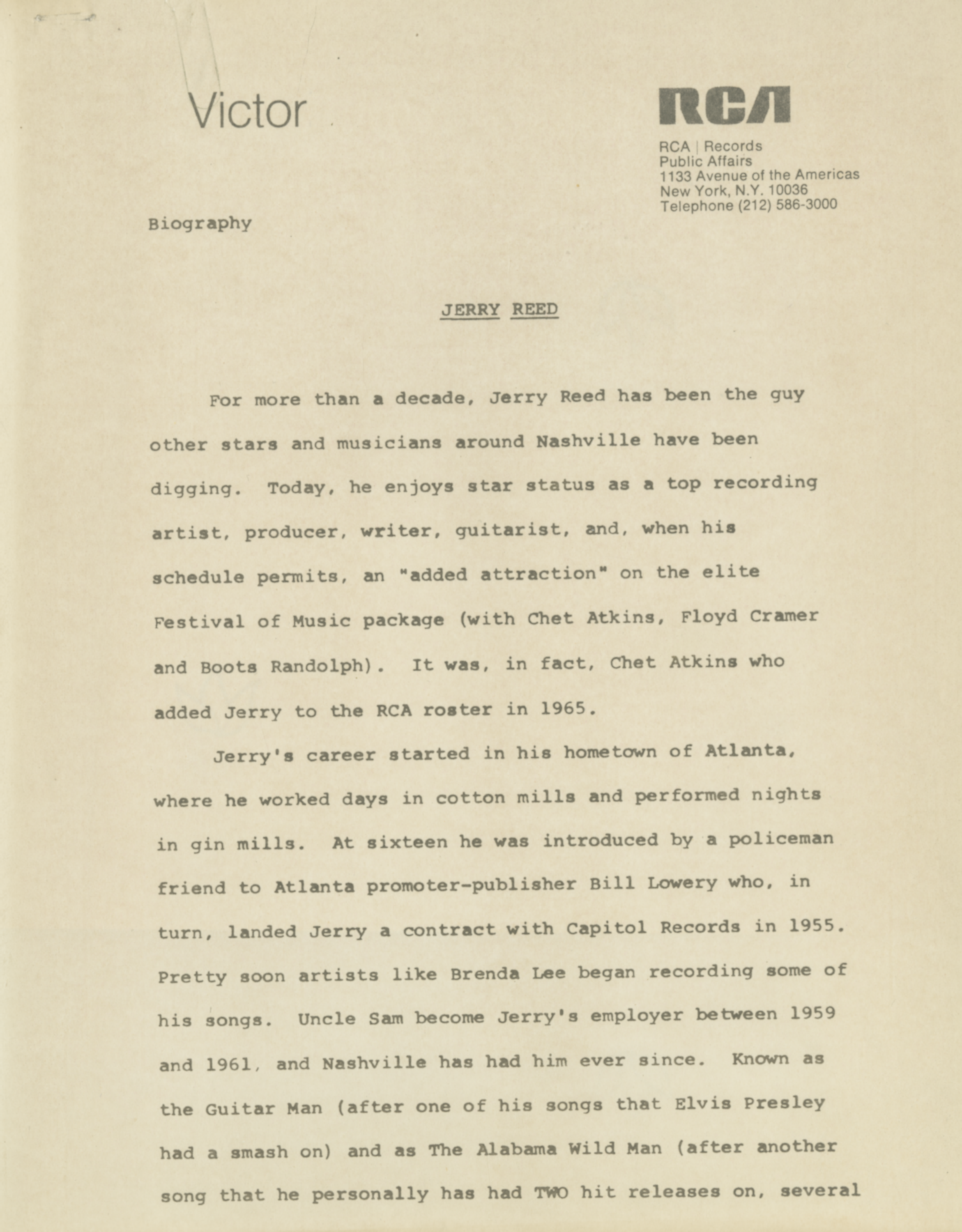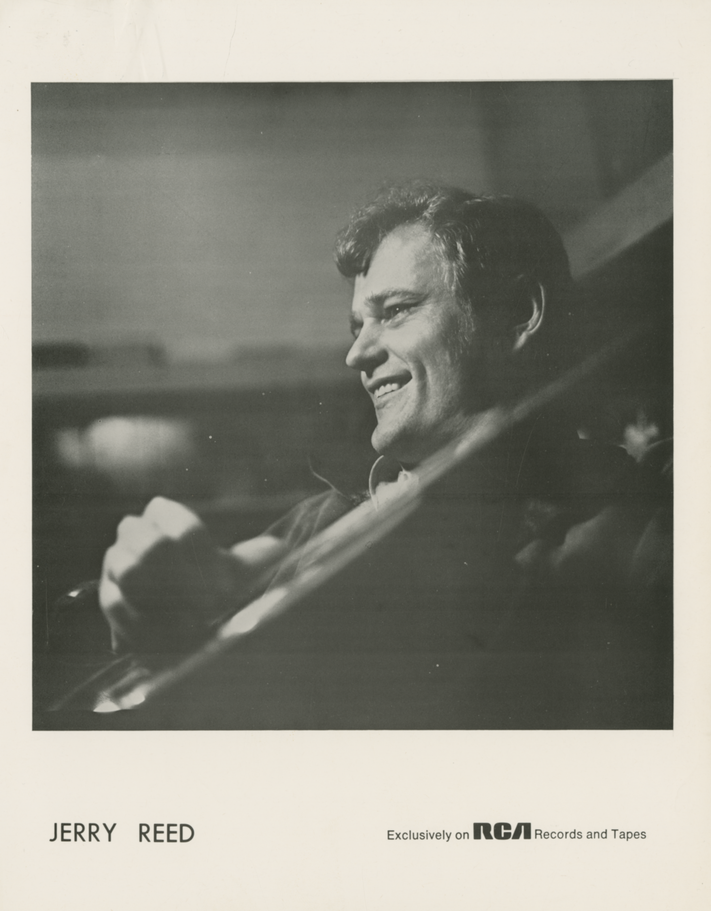 ![]() Television, screen and music star, Jerry Reed performs at a concert in Pitt's Memorial Gymnasium. Image by SSGT Lee Schading, via Wikimedia Commons. Licensed Public domain |