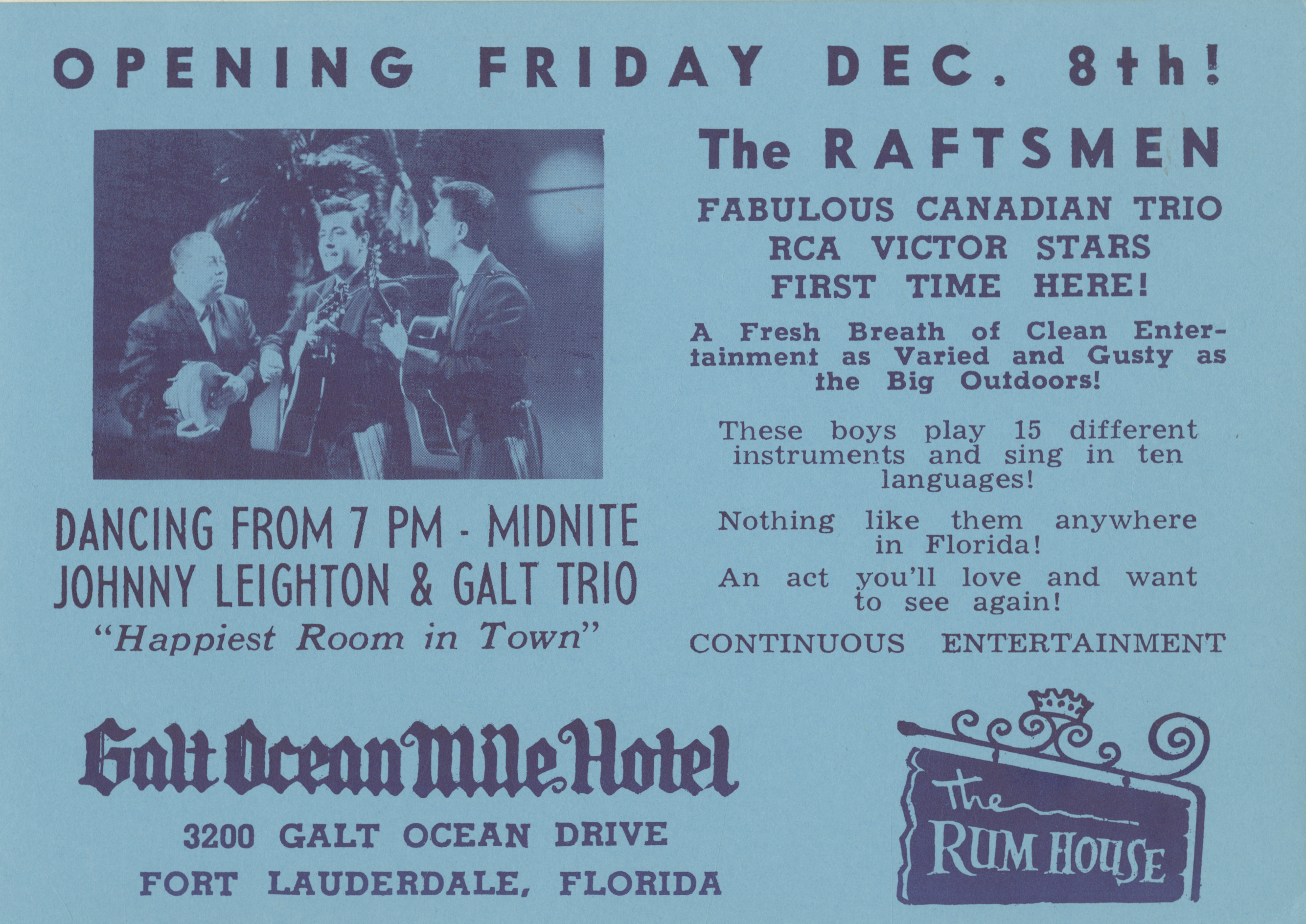 The RaftsmenThe Raftsmen The Raftsmen Canadian folk music group The Raftsmen was a Canadian folk music group, active through the 1960s, which performed Canadian and traditional folk songs. They collectively played 15 different instruments, including guitar, banjo and percussion, and sang songs in 13 languages. Quick facts Origin, Genres ... The Raftsmen Origin Montreal, Quebec, Canada Genres Folk Years active 1960-1970 Labels RCA Records, RCA Camden, Apex Records (Canada), Rodeo Records, Banff Records, Canadian Talent Library, Melbourne Records Past members Louis Leroux Martin Overland (d. 2005) Marvin Burke Guy Pilette Donald Steven Close History The Raftsmen was formed by Louis Leroux, Martin Overland and Marvin Burke.[1] Overland had been the lead singer/guitarist/music arranger for the 1950s Montreal trio The Strangers, along… (Source: Wikipedia)