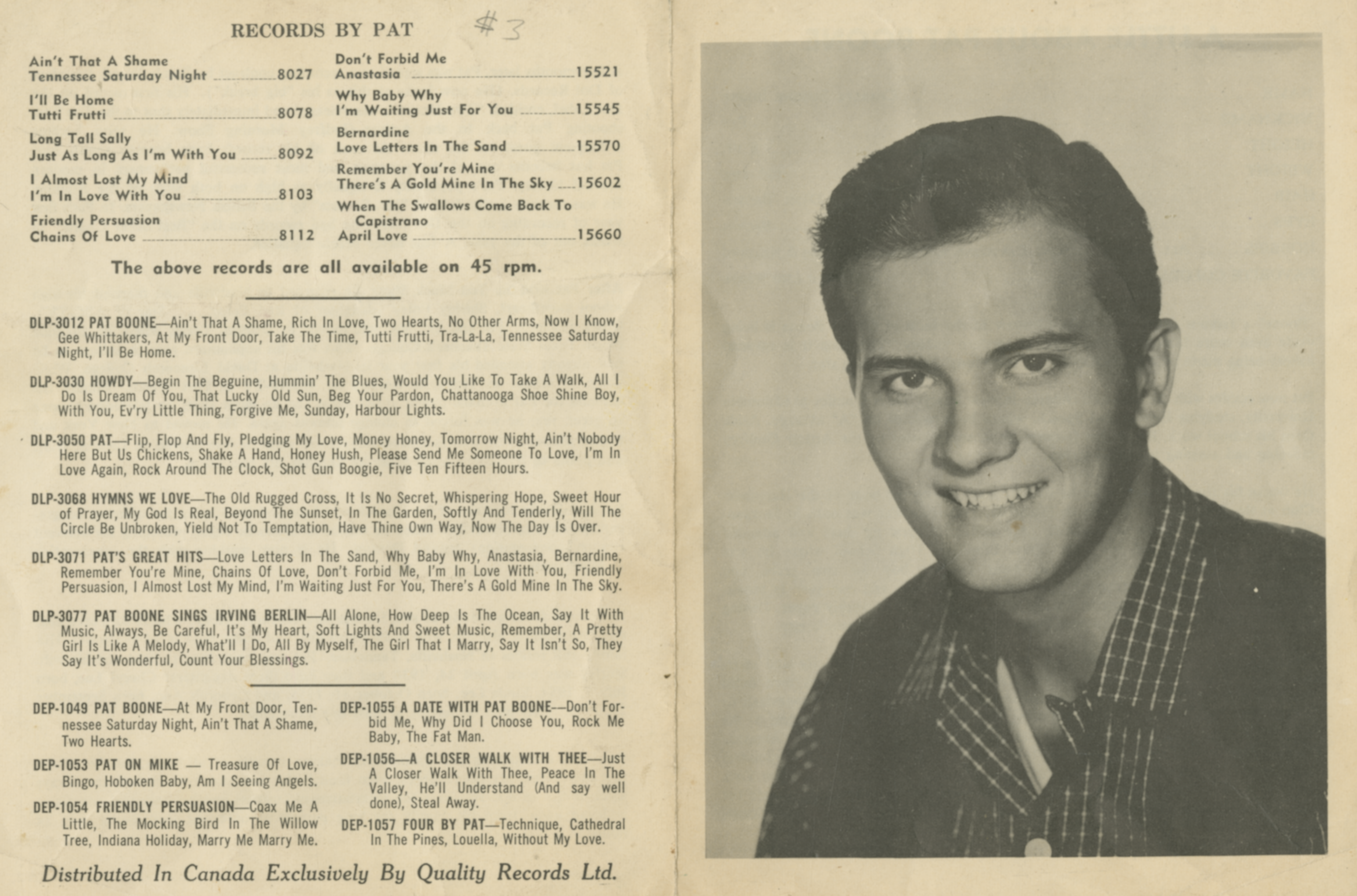 ![]() Pat Boone in 2022 (cropped) Image by ruthdaniel3444, via Wikimedia Commons. Licensed CC BY 2.0 |
