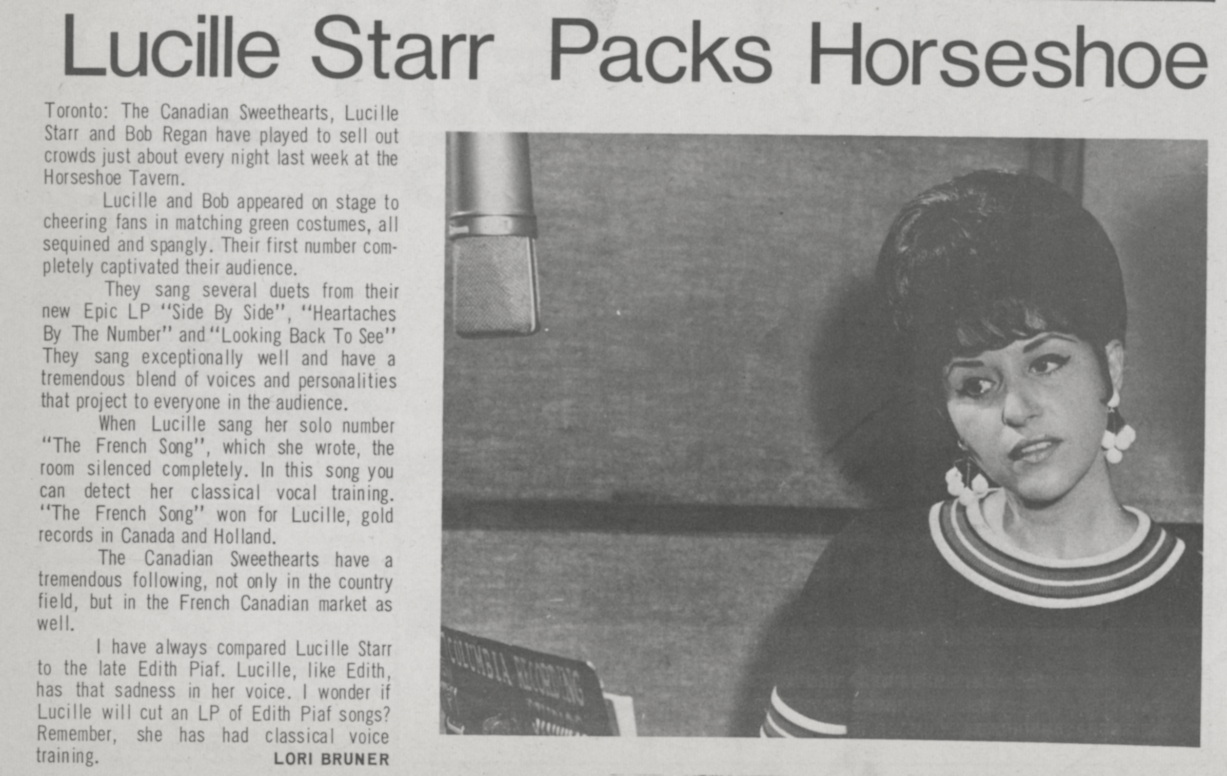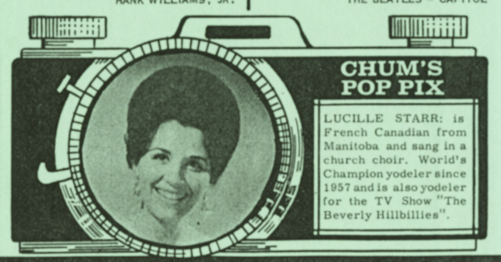 ![]() Grand Gala du Disque 1965 , Lucille Starr 2 oktober 1965 Image by Eric Koch for Anefo, via Wikimedia Commons. Licensed CC BY-SA 3.0 nl |