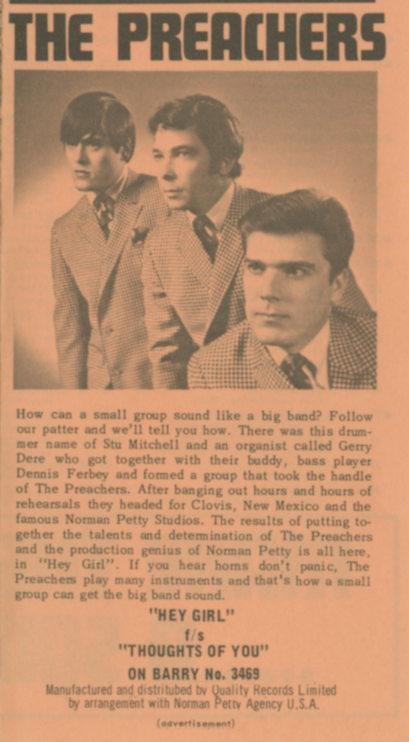 The PreachersThe Preachers The Preachers American rock band (1964–1966) For the Australian band previously known by this name, see The Preatures. The Preachers were an American garage rock band formed in Los Angeles, California, in 1964. Musically, the group took an intense, and pounding musical approach that was heavily influenced by the British Invasion groups, particularly the Rolling Stones and the Dave Clark Five, and their take on American R&B. In their brief recording career, the Preachers released three singles, with their most acclaimed recording being a high-energy rendition of Bo Diddley's, "Who Do You Love?". Quick facts Background information, Origin ... The Preachers Background information Origin Los Angeles, California, United States Genres Garage rock proto-punk folk rock Years active 1964–1966… (Source: Wikipedia)