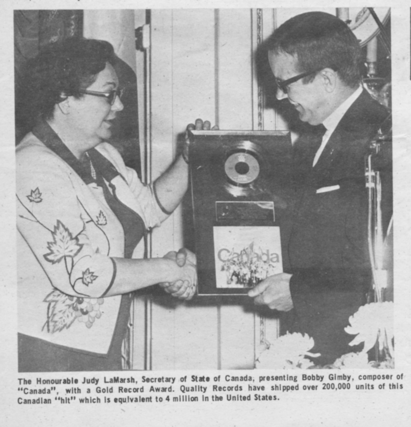 ![]() Bobby Gimby appearing as The Pied Piper during Canada's Centennial celebrations in 1967. Image by Harper Stevens, via Wikimedia Commons. Licensed CC BY-SA 4.0 |