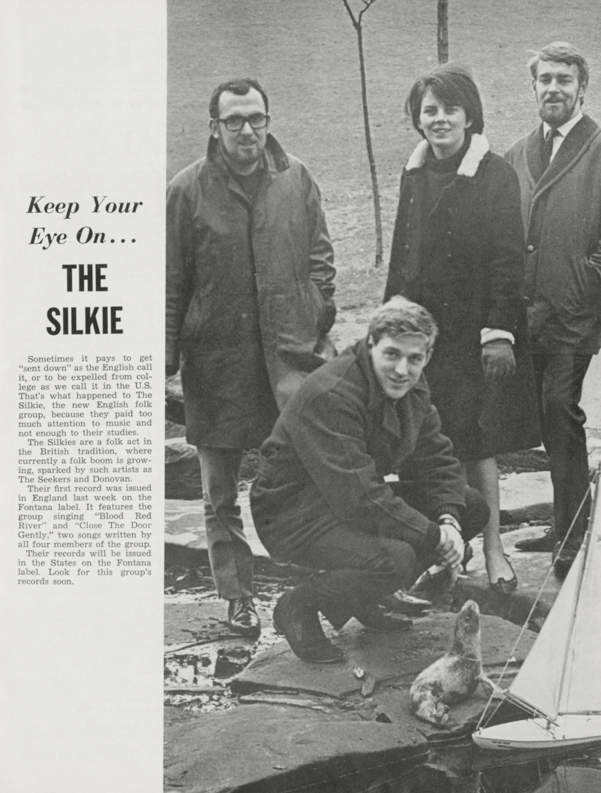 The SilkieThe Silkie The Silkie English folk group This article is about the English folk group. For the science fiction novel by A. E. van Vogt, see The Silkie (novel). The Silkie were an English folk music group. Their name was derived from an Orcadian song "The Great Silkie of Sule Skerry", which they sometimes performed.[1] They were briefly considered to be the English equivalent of Peter, Paul and Mary, with their common repertoire of Bob Dylan songs, and the original Australian folk group, The Seekers. Early days The four original members were all Hull University students who formed the group in October 1963. It consisted of Sylvia Tatler (vocals) (born 1 January 1945, Stoke-on-Trent, Staffordshire), Mike Ramsden (guitar and vocals)… (Source: Wikipedia)