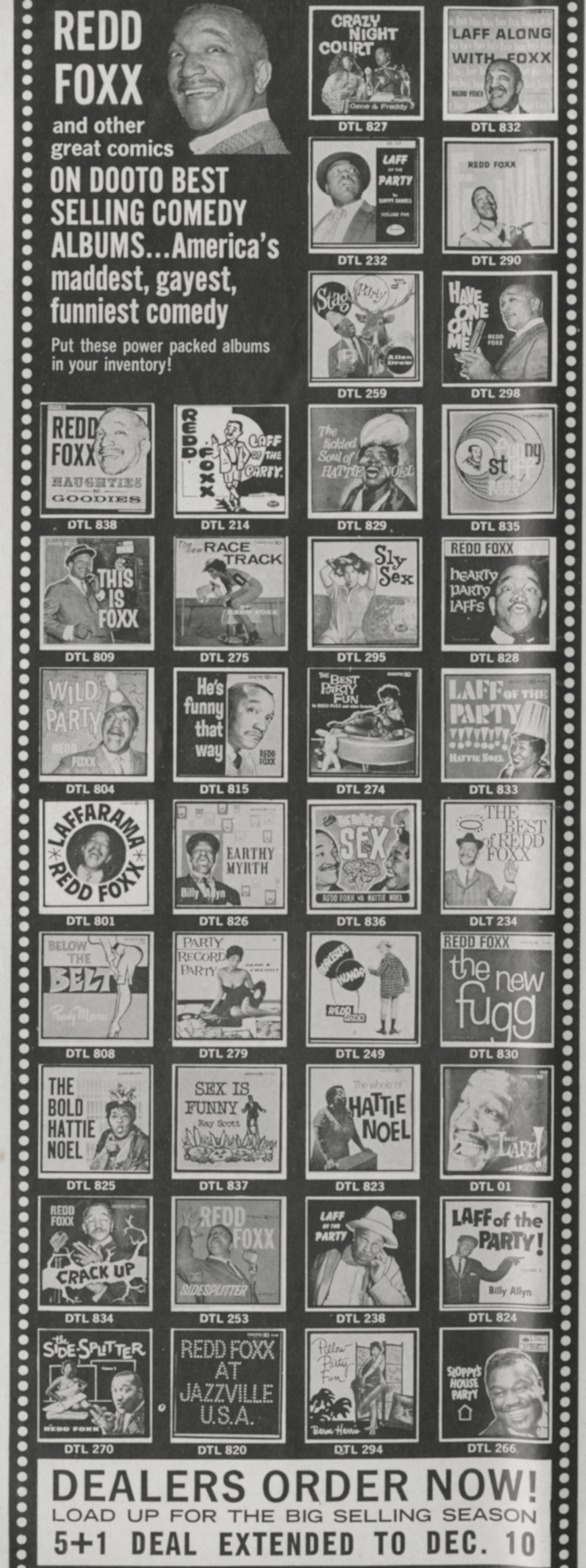 Publicity photo of Redd Foxx. Image by Coast Artists Inc. (management); photographer: John E. Reed, Hollywood., via Wikimedia Commons. Licensed Public domain |